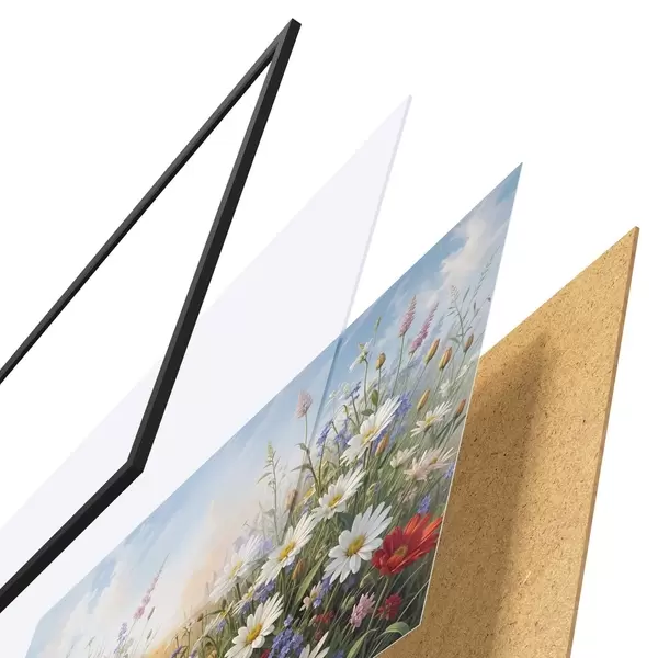 Plakatą sudaro rėmas, pleksiklas, atspausdintas vaizdas ir medžio drožlių plokštės pagrindas. Plakatą galima iš karto pakabinti ant sienos dėl kitoje pusėje esančių laikiklių.