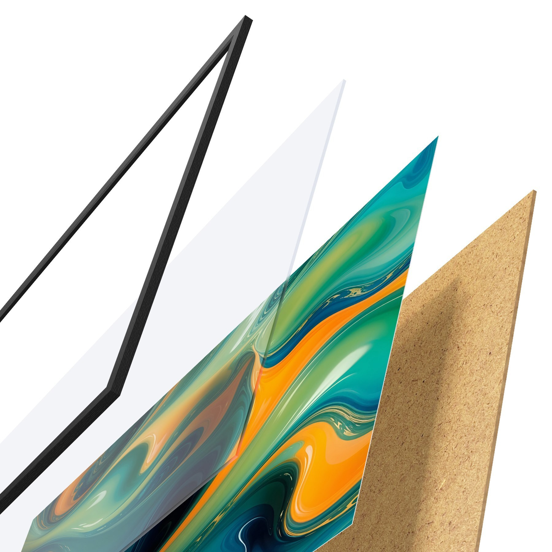 Plakatas Žalių, mėlynų ir oranžinių atspalvių sūkuriuojantys abstraktūs raštai, organiškos formos ir tekstūros Ne f41737