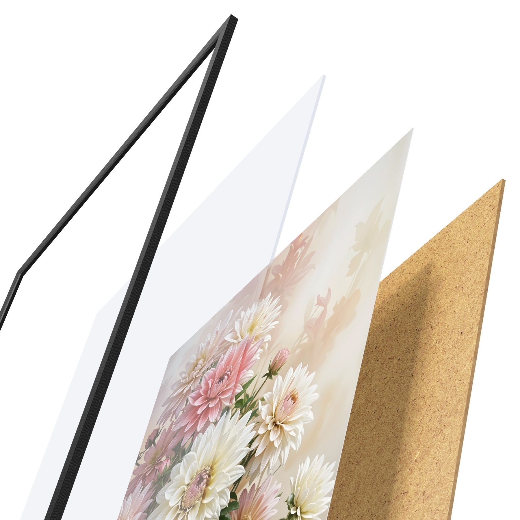 Plakatą sudaro rėmas, pleksiklas, atspausdintas vaizdas ir medžio drožlių plokštės pagrindas. Plakatą galima iš karto pakabinti ant sienos dėl kitoje pusėje esančių laikiklių.