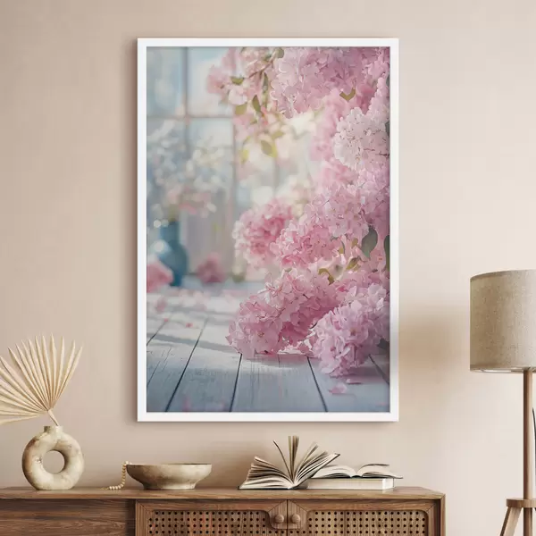 Plakatas Rožinė alyvinė spalva lango fone f41748