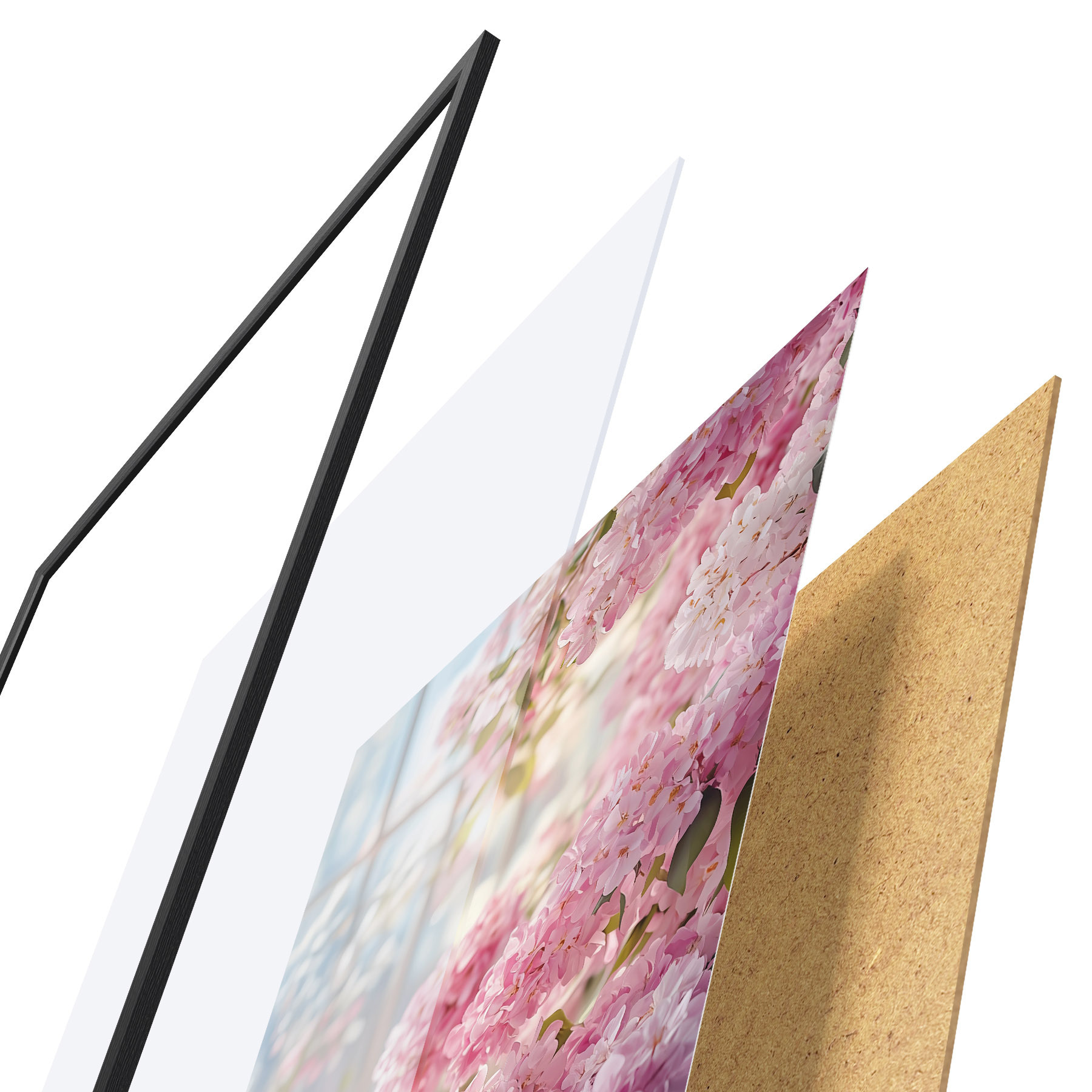 Plakatą sudaro rėmas, pleksiklas, atspausdintas vaizdas ir medžio drožlių plokštės pagrindas. Plakatą galima iš karto pakabinti ant sienos dėl kitoje pusėje esančių laikiklių.