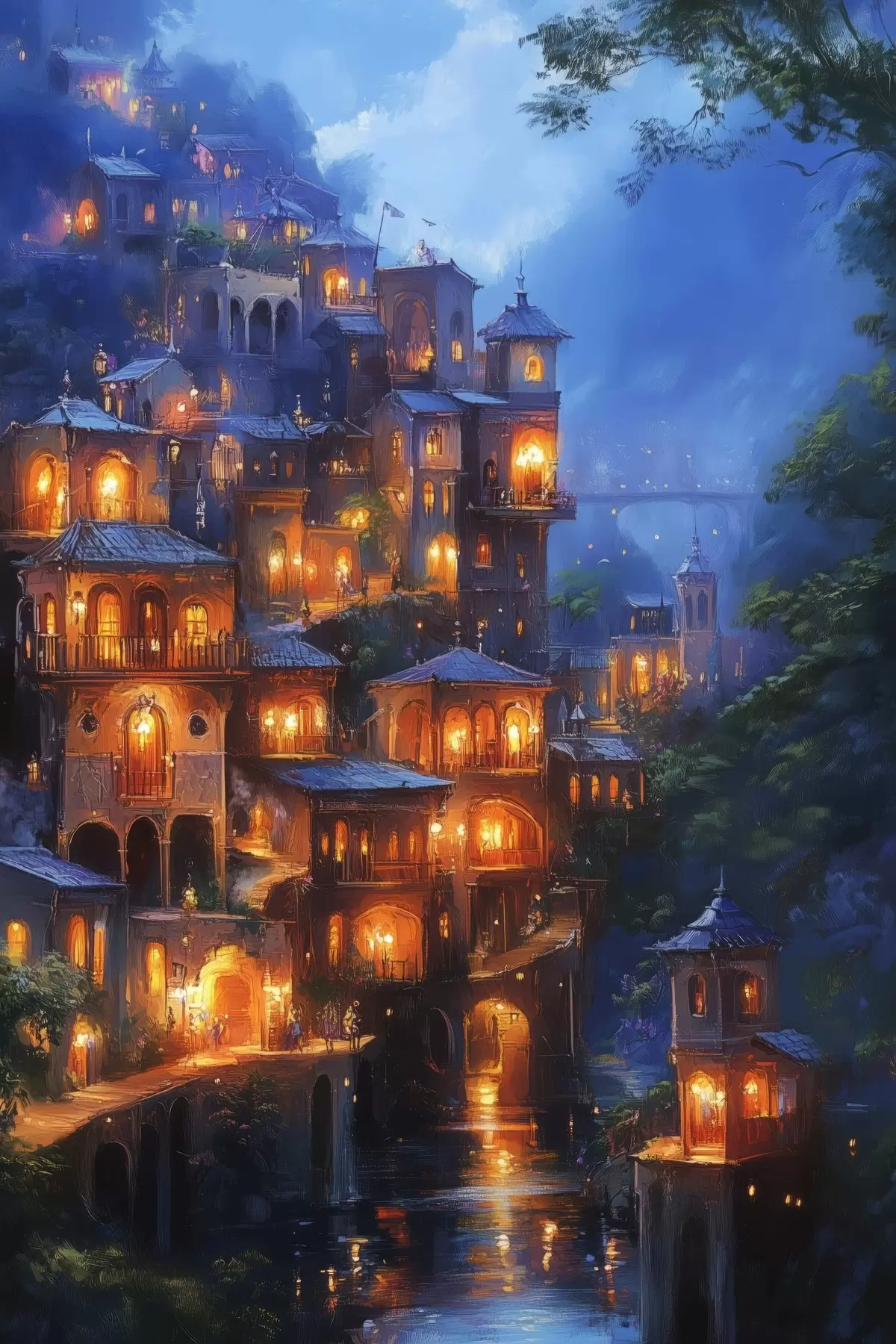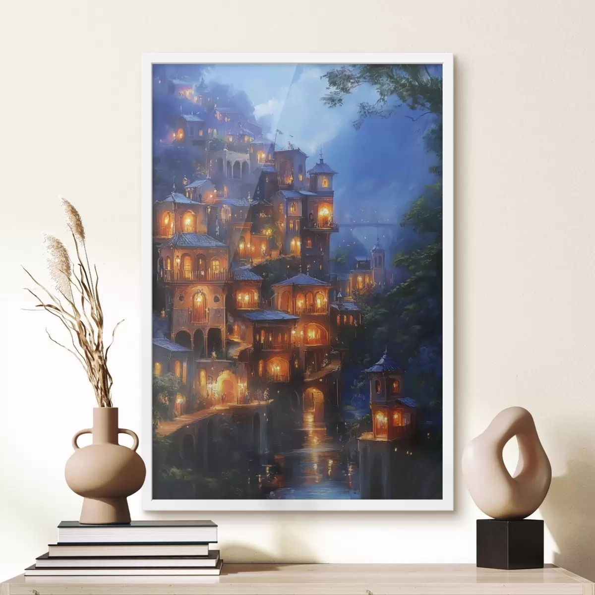 Plakatas Naktinis miestas kalnuose Ne f41750