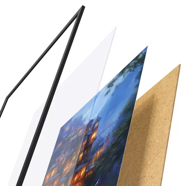 Plakatą sudaro rėmas, pleksiklas, atspausdintas vaizdas ir medžio drožlių plokštės pagrindas. Plakatą galima iš karto pakabinti ant sienos dėl kitoje pusėje esančių laikiklių.