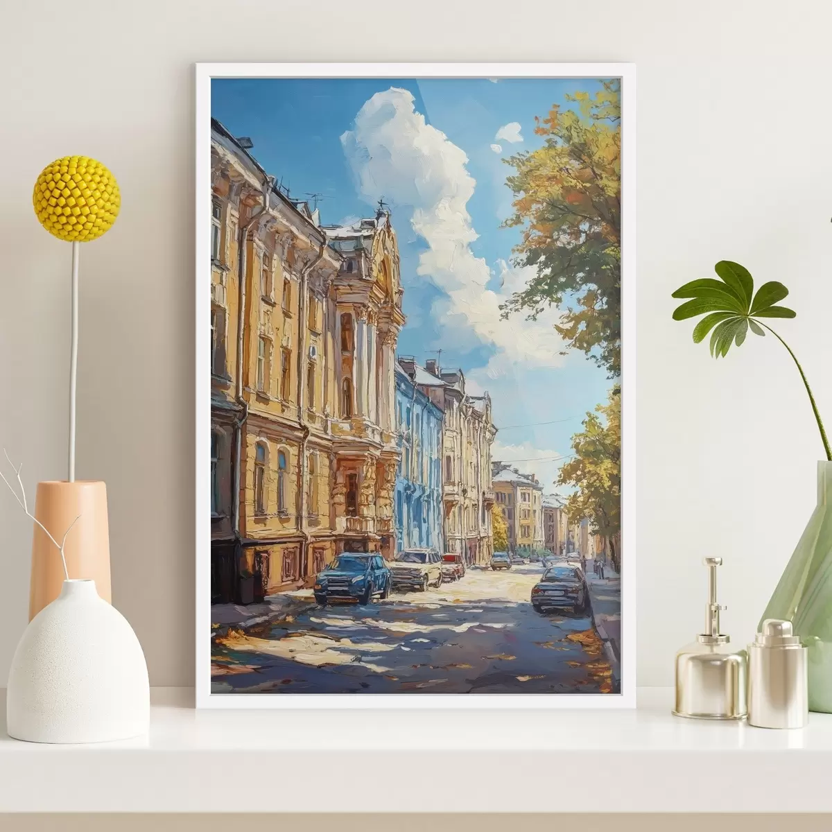 Plakatas Miesto gatvė saulėtą dieną, aliejinių dažų stiliumi f41751