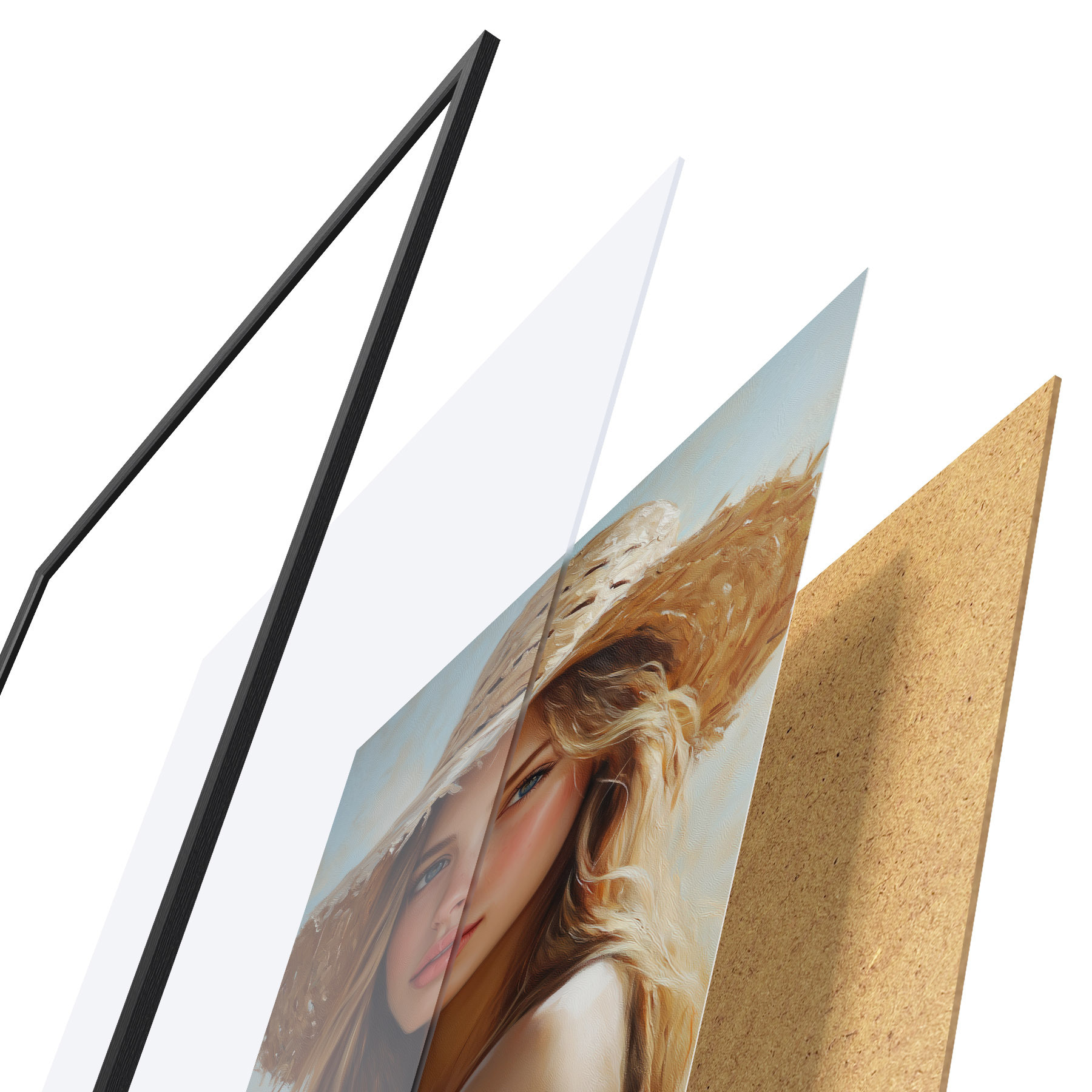 Plakatą sudaro rėmas, pleksiklas, atspausdintas vaizdas ir medžio drožlių plokštės pagrindas. Plakatą galima iš karto pakabinti ant sienos dėl kitoje pusėje esančių laikiklių.