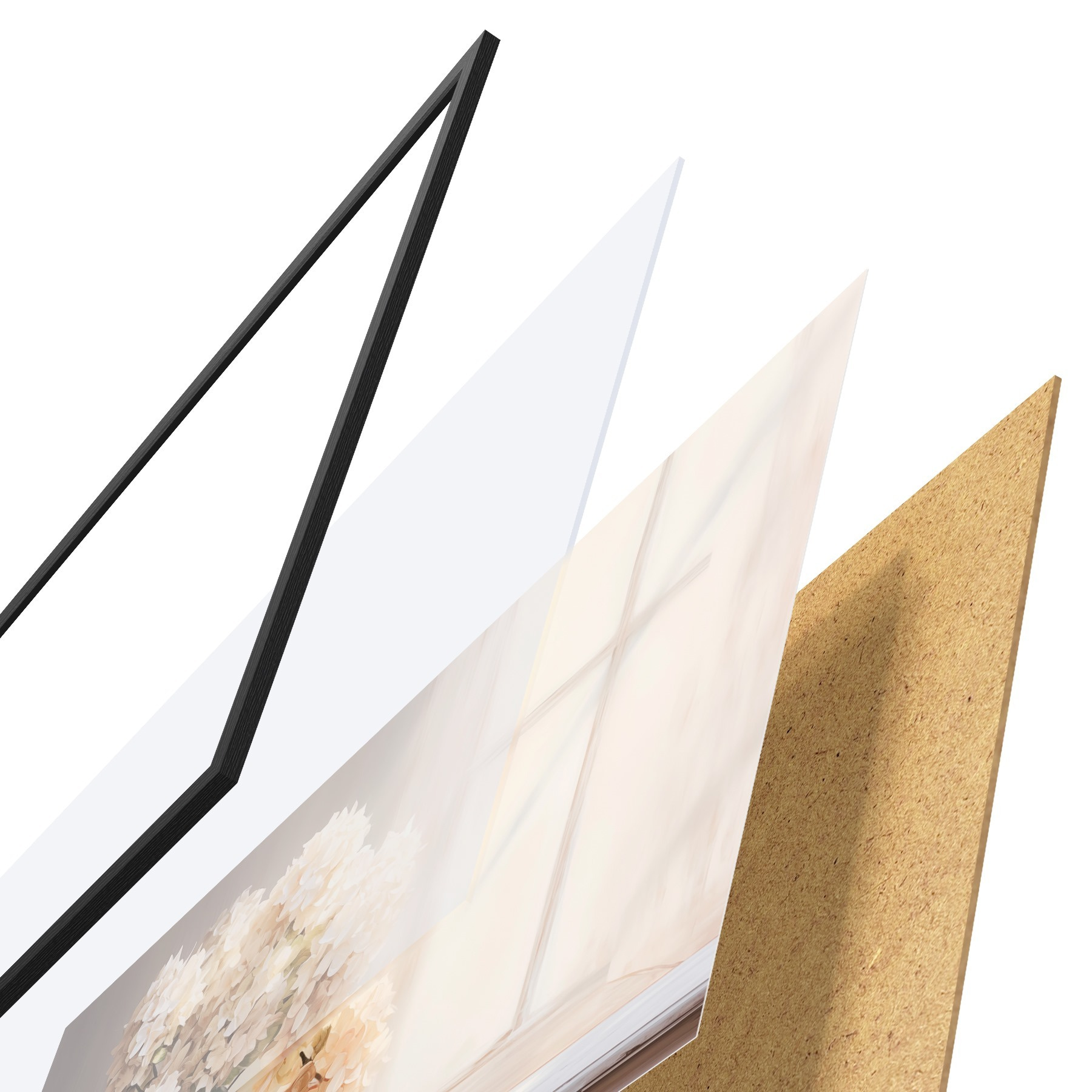 Plakatą sudaro rėmas, pleksiklas, atspausdintas vaizdas ir medžio drožlių plokštės pagrindas. Plakatą galima iš karto pakabinti ant sienos dėl kitoje pusėje esančių laikiklių.