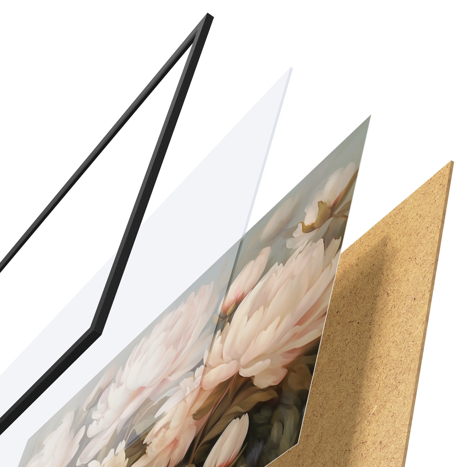Plakatą sudaro rėmas, pleksiklas, atspausdintas vaizdas ir medžio drožlių plokštės pagrindas. Plakatą galima iš karto pakabinti ant sienos dėl kitoje pusėje esančių laikiklių.