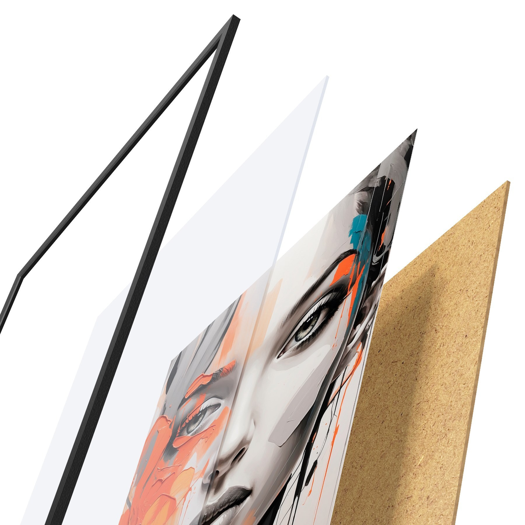 Plakatą sudaro rėmas, pleksiklas, atspausdintas vaizdas ir medžio drožlių plokštės pagrindas. Plakatą galima iš karto pakabinti ant sienos dėl kitoje pusėje esančių laikiklių.