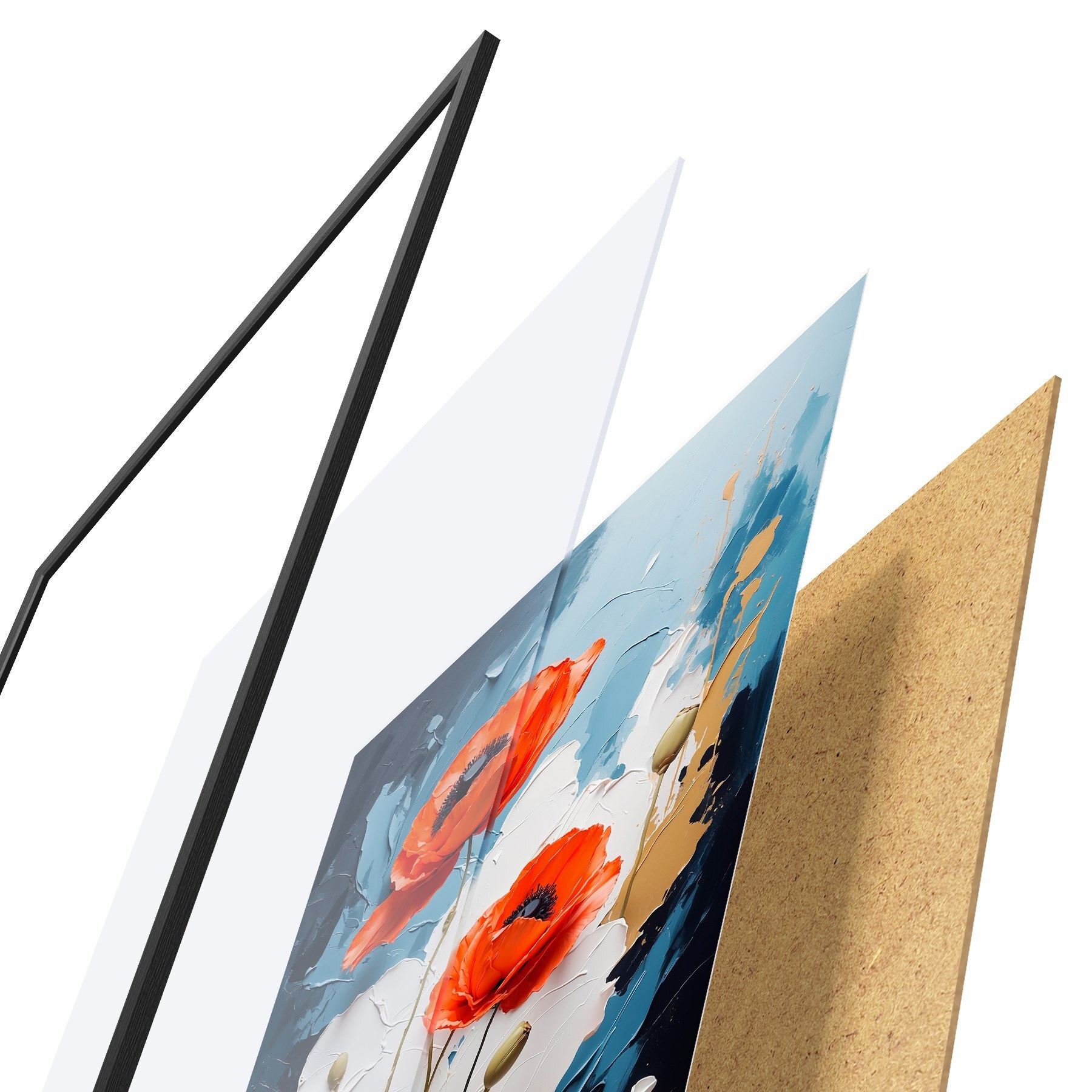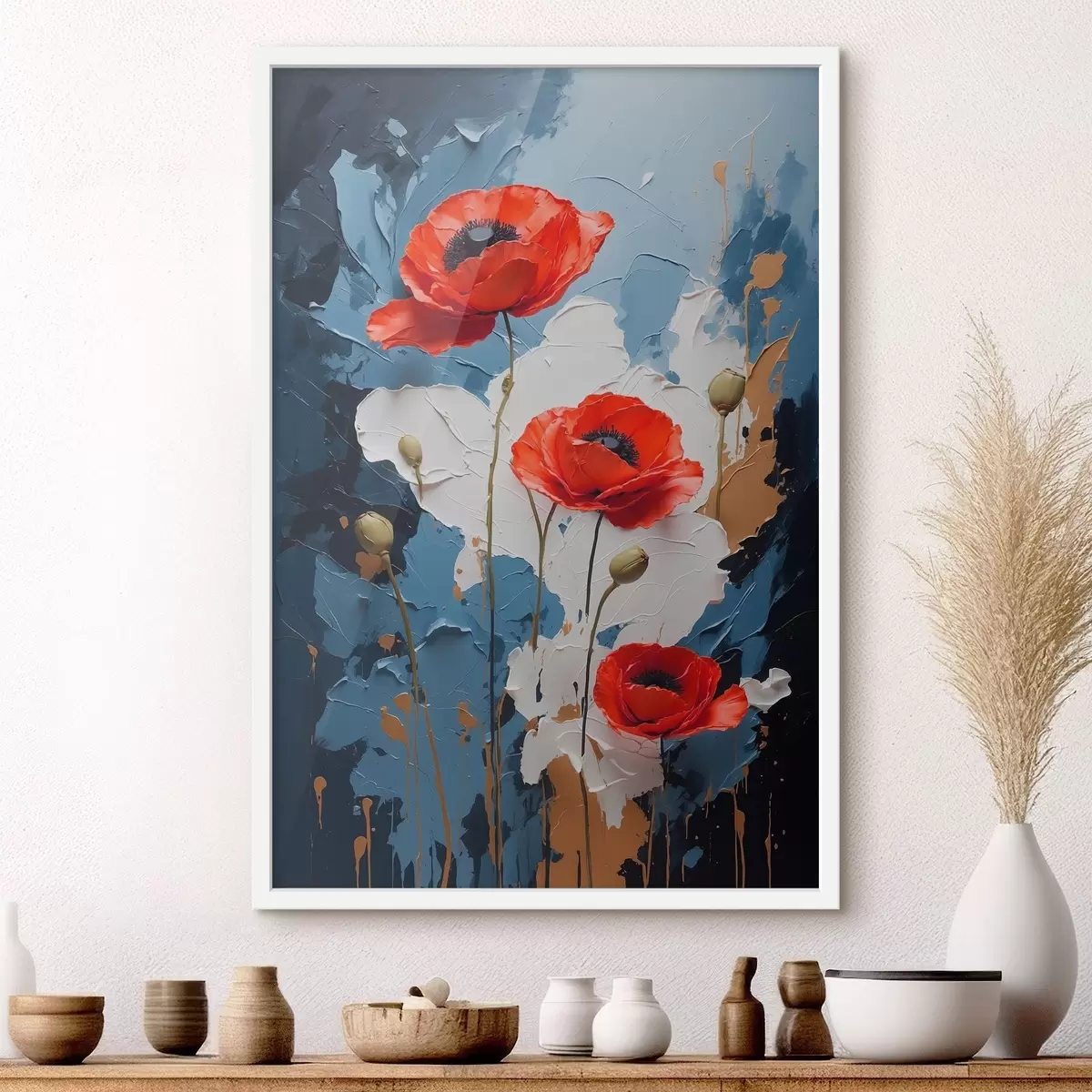 Plakatas Aguonos abstrakčiame įvairiaspalviame fone aliejinės tapybos stiliumi f41765