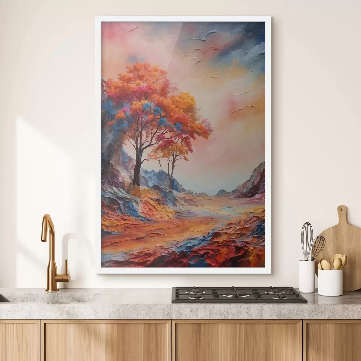 Plakatas Medžiai ir abstraktūs įvairiaspalviai kalnai Ne f41772