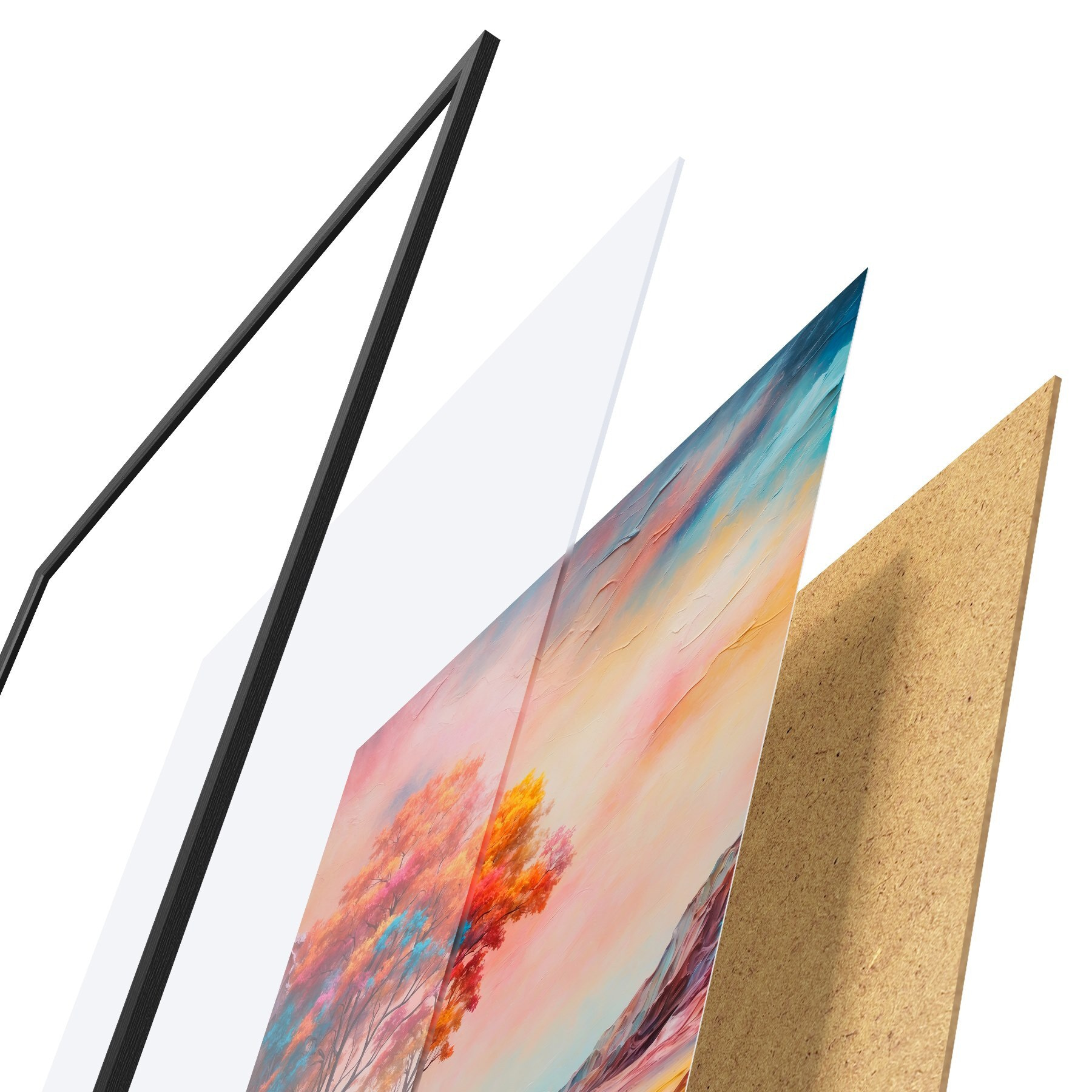 Plakatą sudaro rėmas, pleksiklas, atspausdintas vaizdas ir medžio drožlių plokštės pagrindas. Plakatą galima iš karto pakabinti ant sienos dėl kitoje pusėje esančių laikiklių.