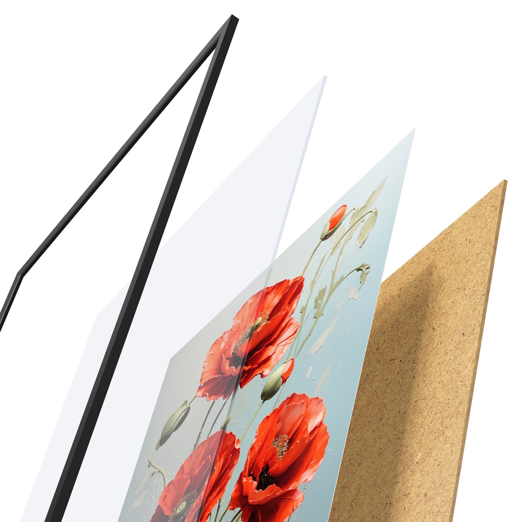 Plakatą sudaro rėmas, pleksiklas, atspausdintas vaizdas ir medžio drožlių plokštės pagrindas. Plakatą galima iš karto pakabinti ant sienos dėl kitoje pusėje esančių laikiklių.