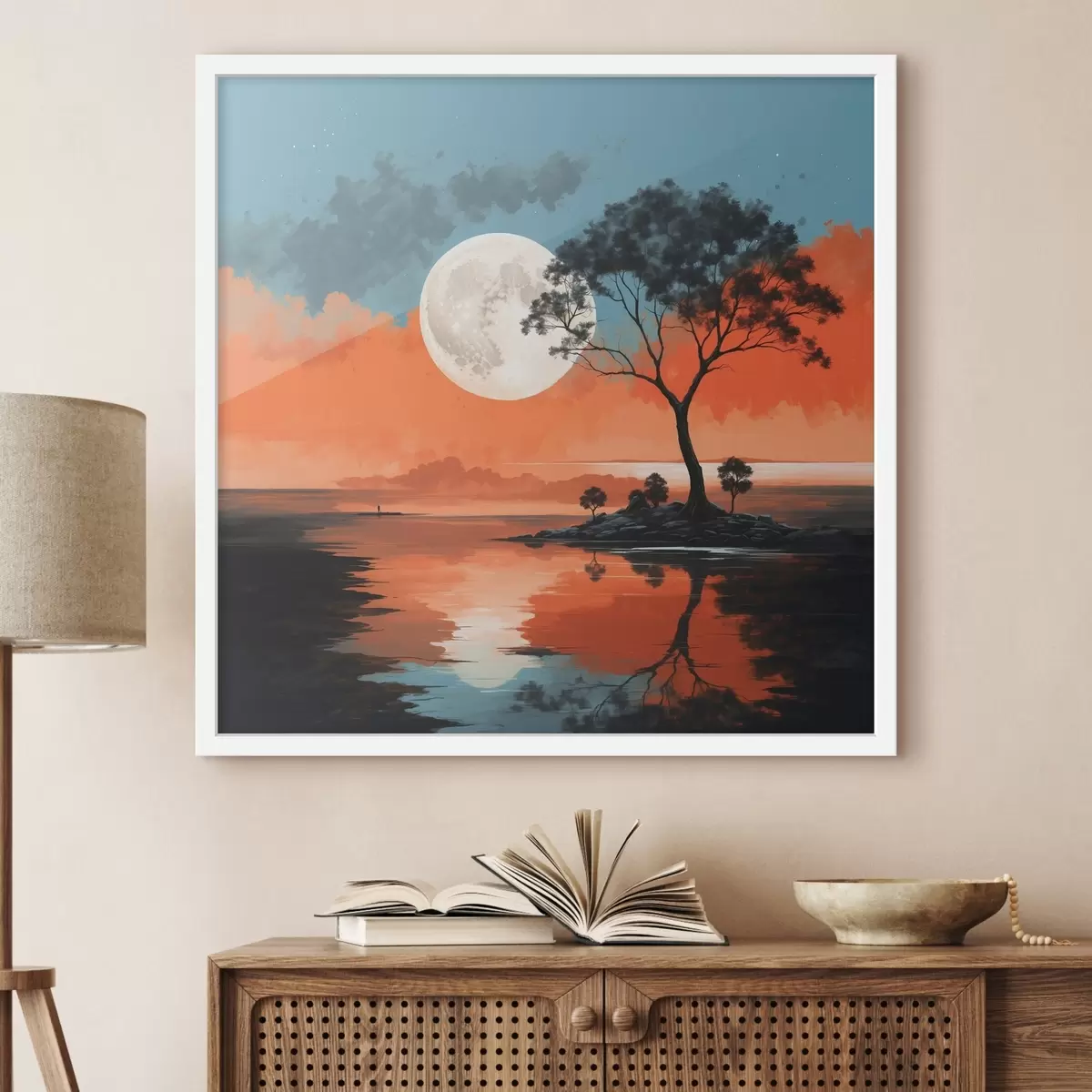 Plakatas Medis ežero viduryje mėnulio fone Ne f41775