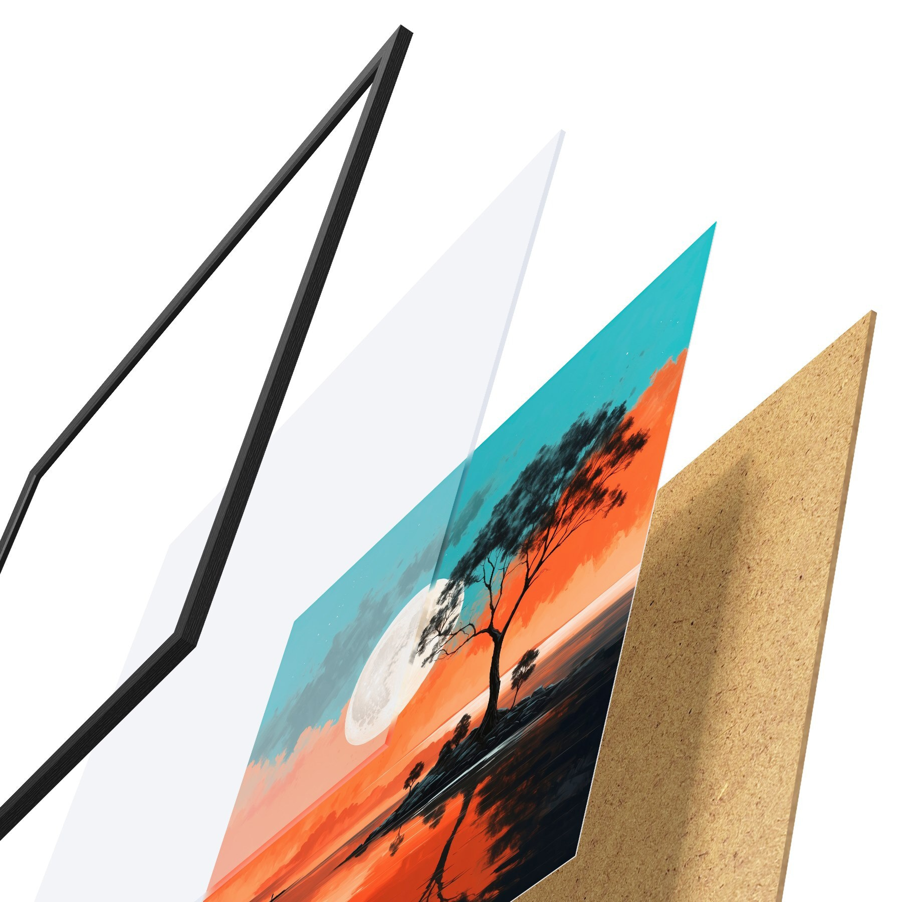 Plakatą sudaro rėmas, pleksiklas, atspausdintas vaizdas ir medžio drožlių plokštės pagrindas. Plakatą galima iš karto pakabinti ant sienos dėl kitoje pusėje esančių laikiklių.