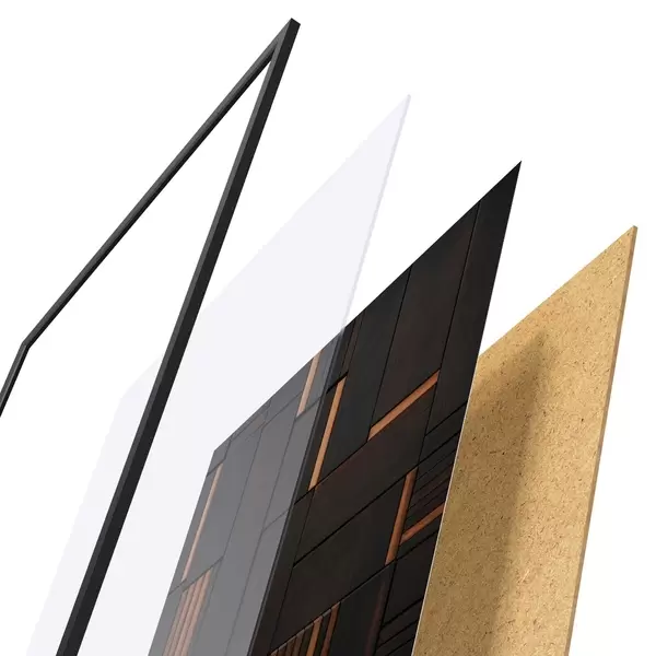 Plakatą sudaro rėmas, pleksiklas, atspausdintas vaizdas ir medžio drožlių plokštės pagrindas. Plakatą galima iš karto pakabinti ant sienos dėl kitoje pusėje esančių laikiklių.