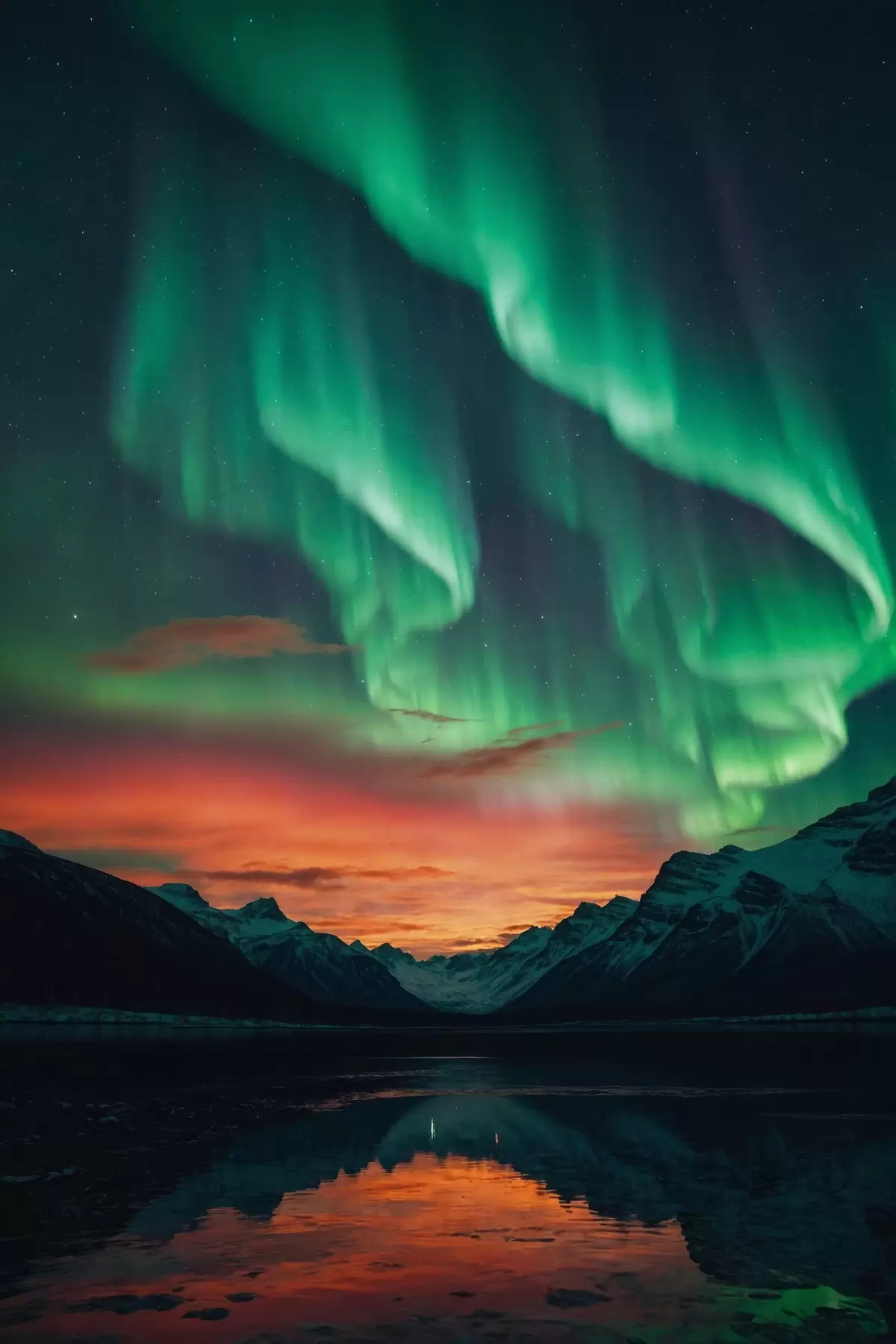 Plakatas Šiaurės pašvaistė virš kalnų f41783