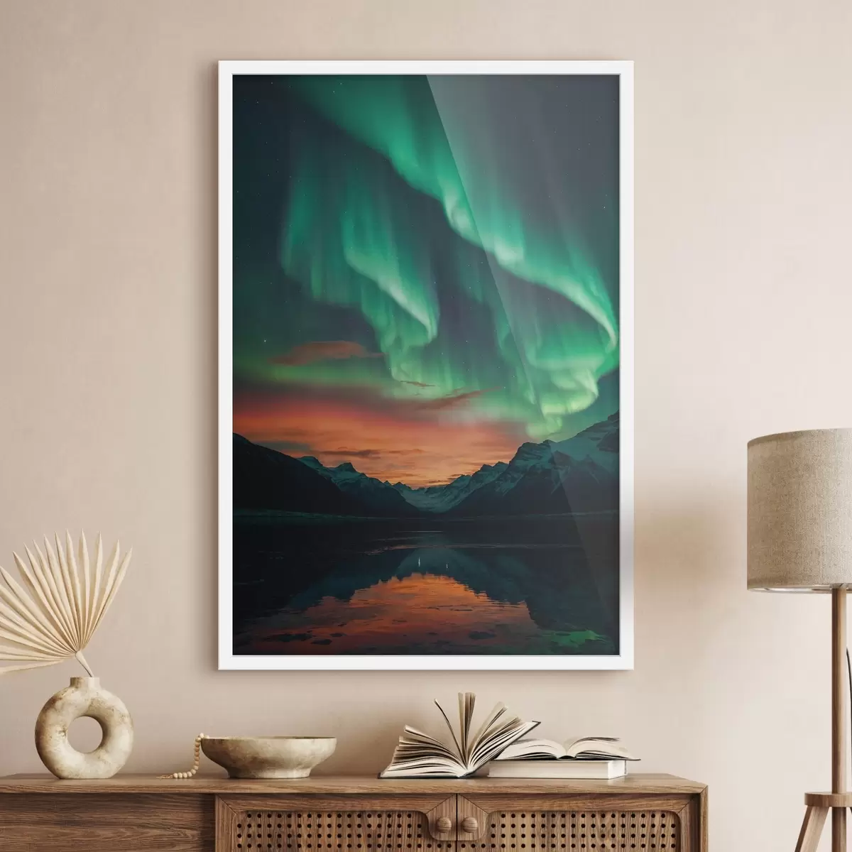 Plakatas Šiaurės pašvaistė virš kalnų Ne f41783