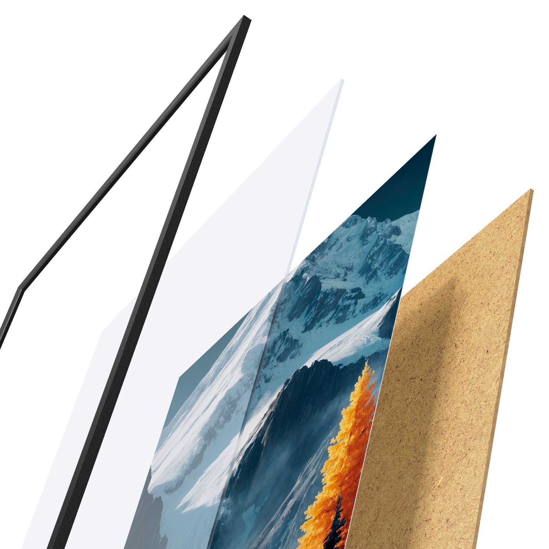 Plakatą sudaro rėmas, pleksiklas, atspausdintas vaizdas ir medžio drožlių plokštės pagrindas. Plakatą galima iš karto pakabinti ant sienos dėl kitoje pusėje esančių laikiklių.