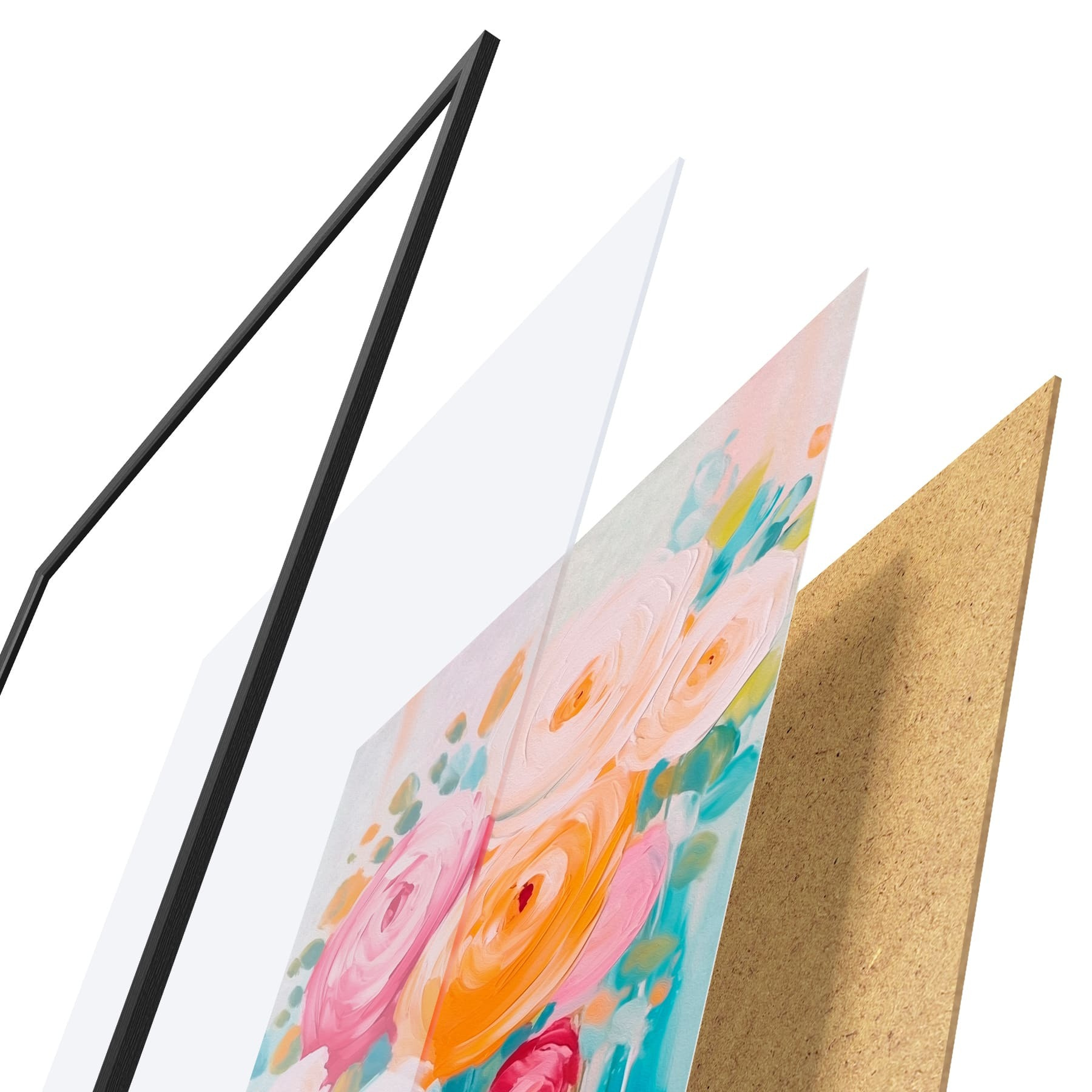 Plakatą sudaro rėmas, pleksiklas, atspausdintas vaizdas ir medžio drožlių plokštės pagrindas. Plakatą galima iš karto pakabinti ant sienos dėl kitoje pusėje esančių laikiklių.