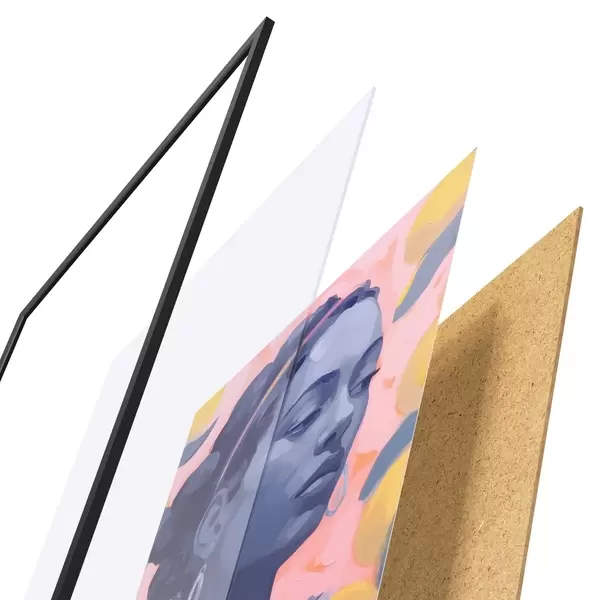 Plakatą sudaro rėmas, pleksiklas, atspausdintas vaizdas ir medžio drožlių plokštės pagrindas. Plakatą galima iš karto pakabinti ant sienos dėl kitoje pusėje esančių laikiklių.