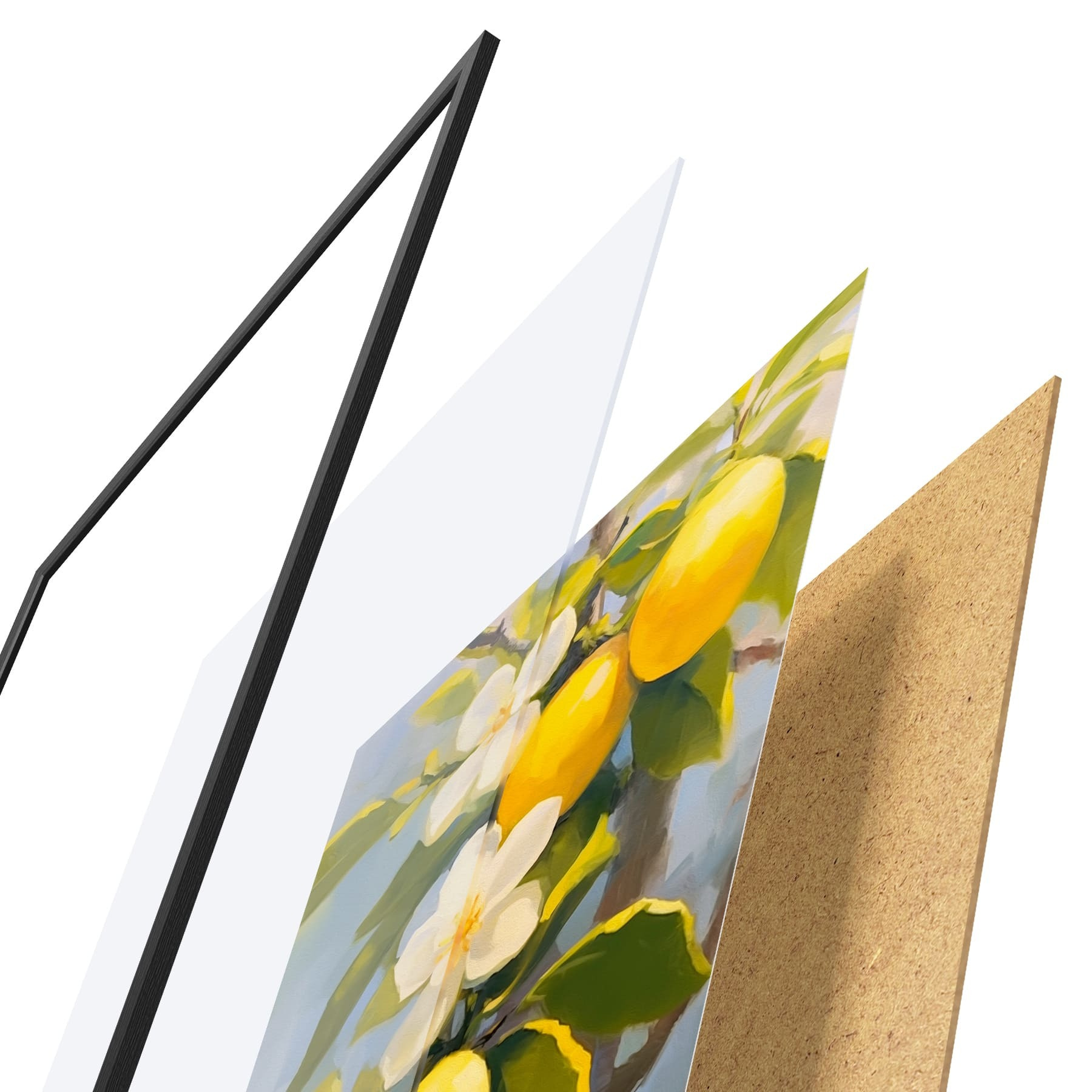 Plakatą sudaro rėmas, pleksiklas, atspausdintas vaizdas ir medžio drožlių plokštės pagrindas. Plakatą galima iš karto pakabinti ant sienos dėl kitoje pusėje esančių laikiklių.