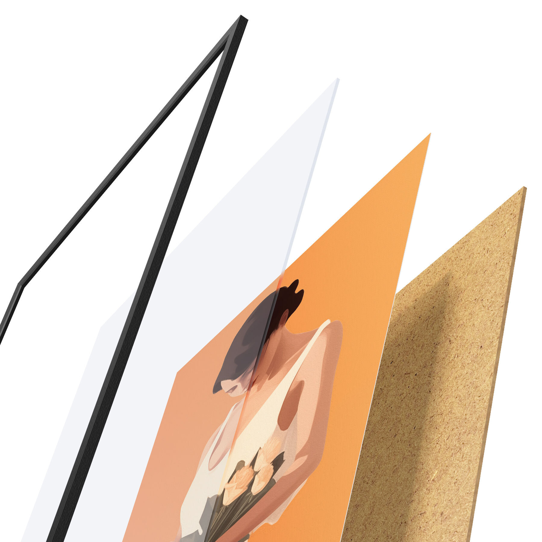 Plakatą sudaro rėmas, pleksiklas, atspausdintas vaizdas ir medžio drožlių plokštės pagrindas. Plakatą galima iš karto pakabinti ant sienos dėl kitoje pusėje esančių laikiklių.