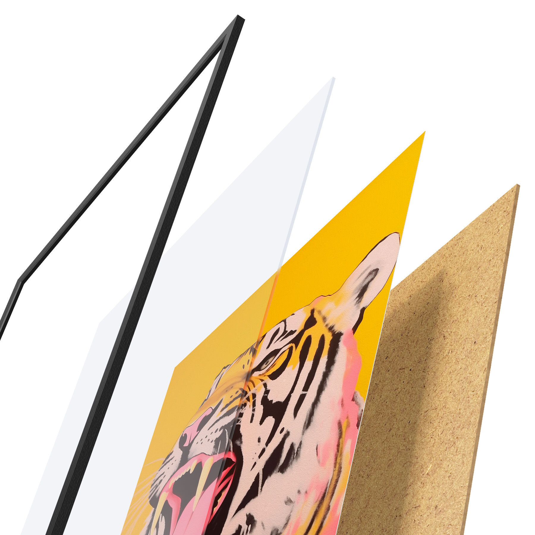Plakatą sudaro rėmas, pleksiklas, atspausdintas vaizdas ir medžio drožlių plokštės pagrindas. Plakatą galima iš karto pakabinti ant sienos dėl kitoje pusėje esančių laikiklių.