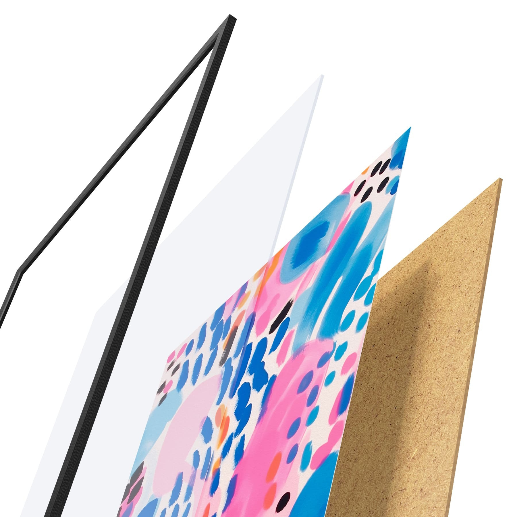 Plakatą sudaro rėmas, pleksiklas, atspausdintas vaizdas ir medžio drožlių plokštės pagrindas. Plakatą galima iš karto pakabinti ant sienos dėl kitoje pusėje esančių laikiklių.