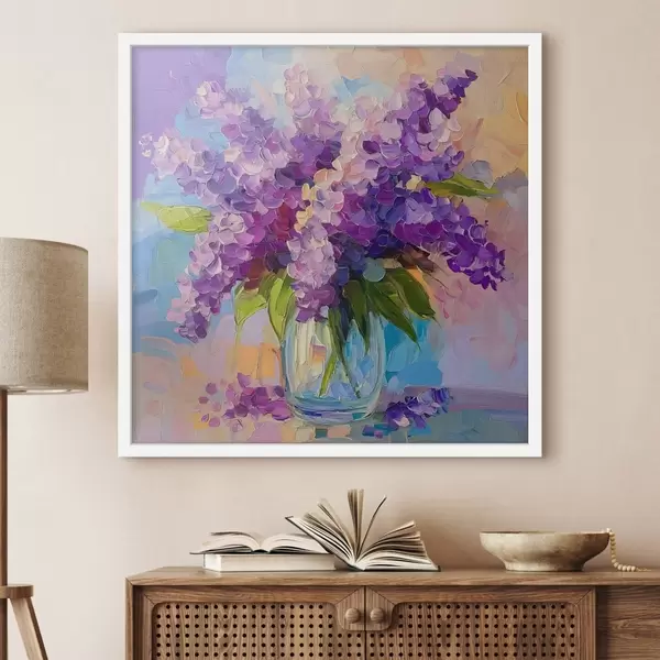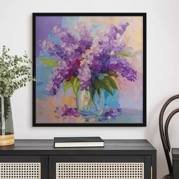 Plakatas Levandų gėlės stiklinėje vazoje f41815