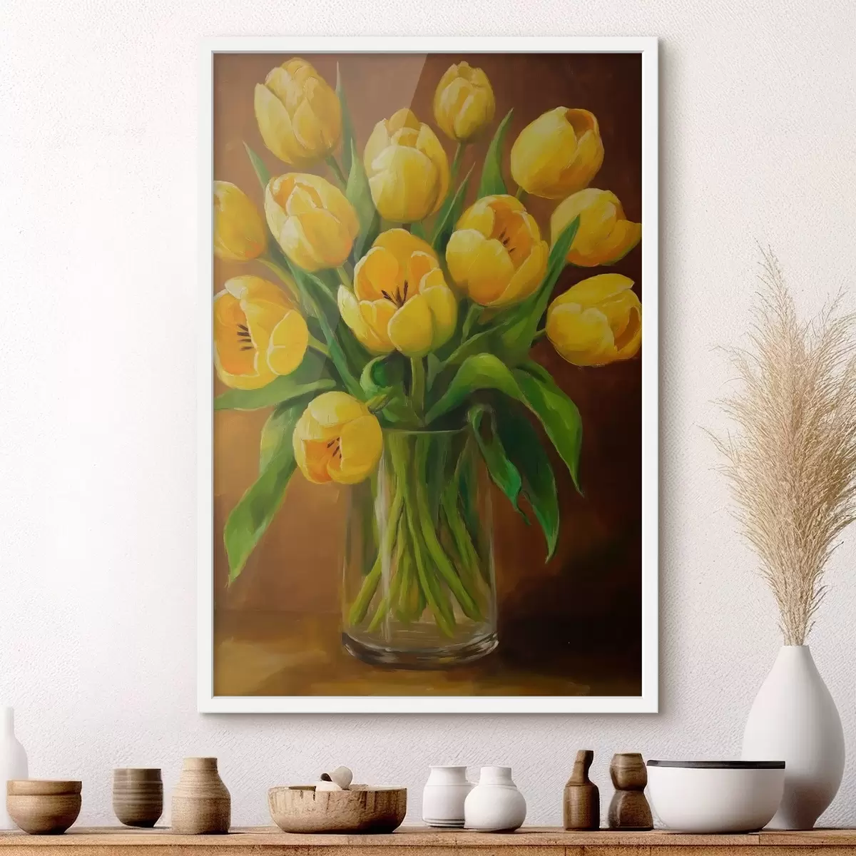 Plakatas Geltonos tulpės skaidrioje vazoje f41817