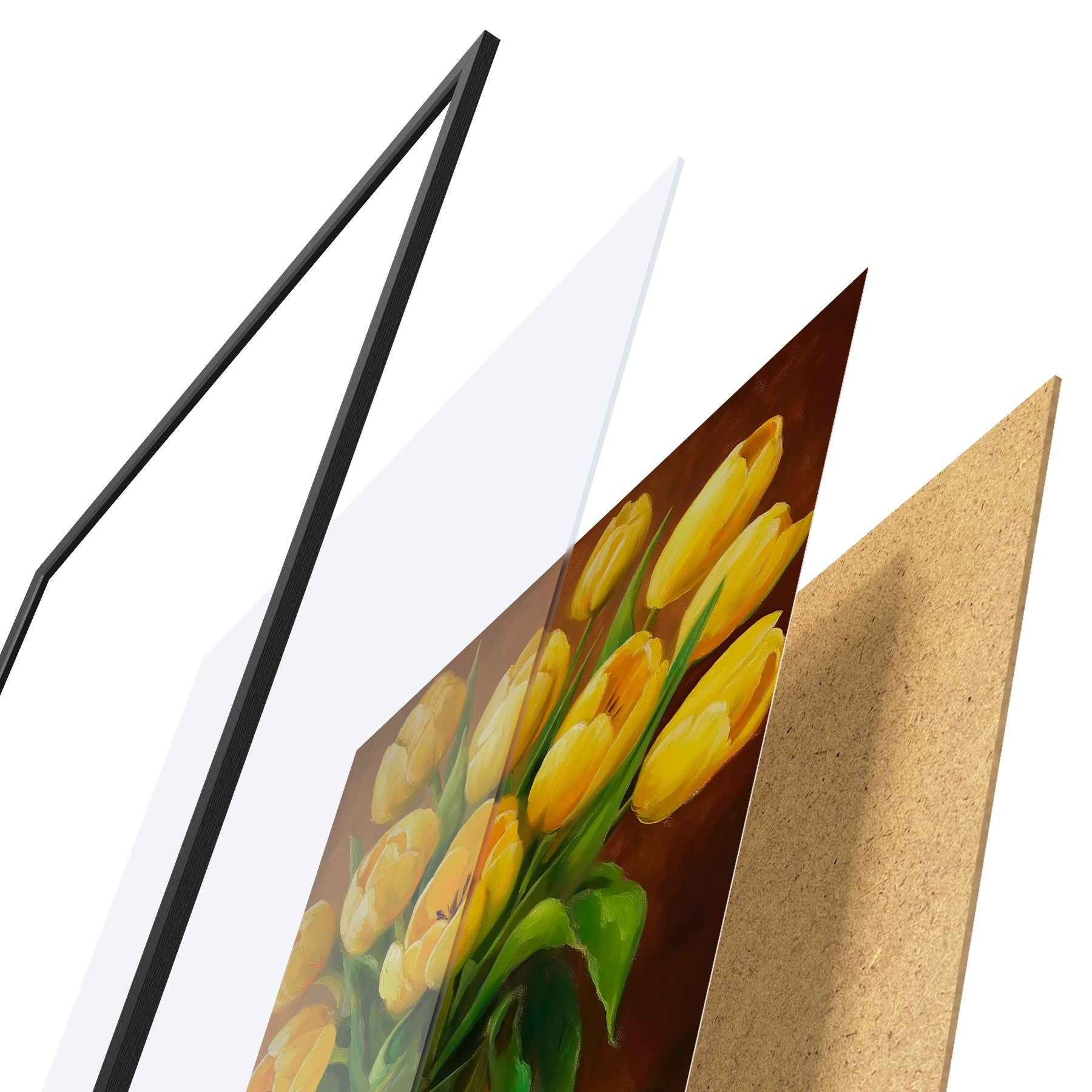 Plakatą sudaro rėmas, pleksiklas, atspausdintas vaizdas ir medžio drožlių plokštės pagrindas. Plakatą galima iš karto pakabinti ant sienos dėl kitoje pusėje esančių laikiklių.