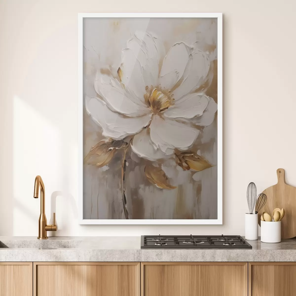 Plakatas Balta gėlė su geltonais atspalviais tekstūriniame fone f41820
