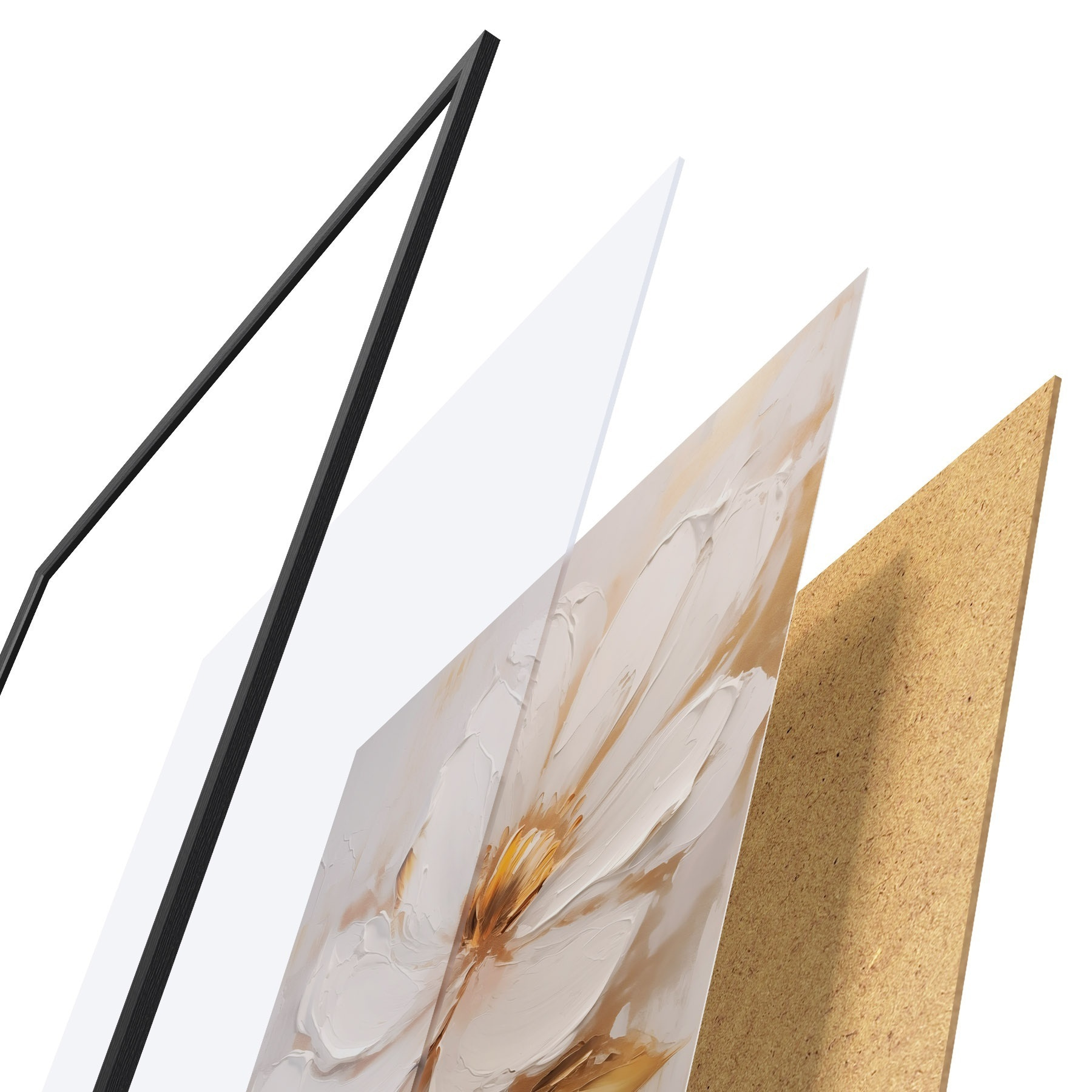 Plakatą sudaro rėmas, pleksiklas, atspausdintas vaizdas ir medžio drožlių plokštės pagrindas. Plakatą galima iš karto pakabinti ant sienos dėl kitoje pusėje esančių laikiklių.