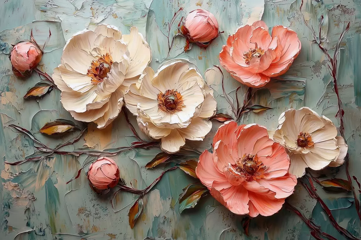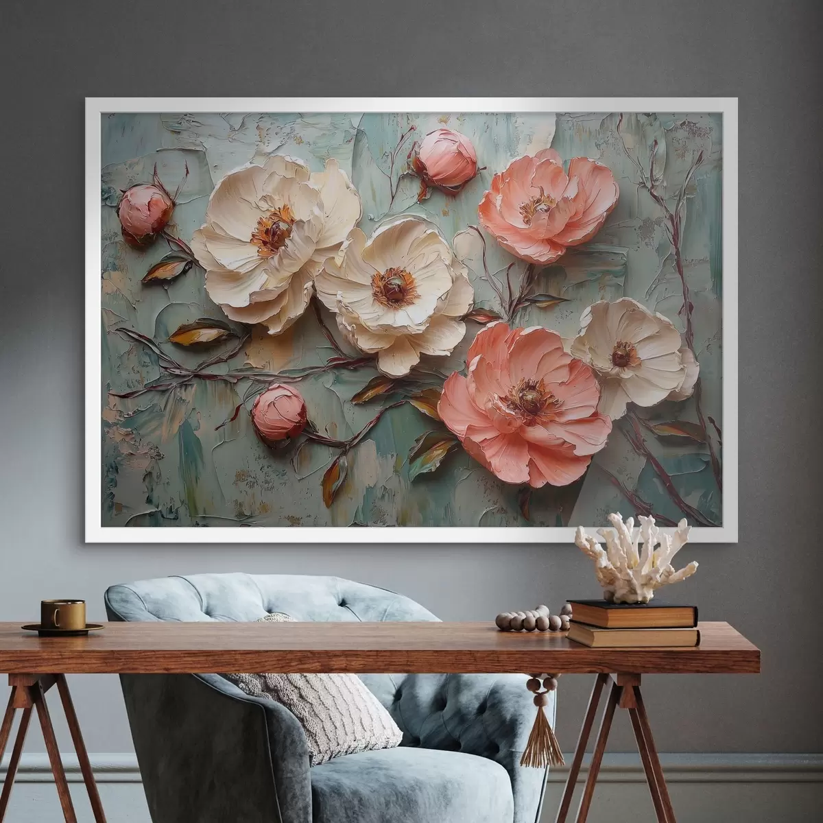 Plakatas Švelnių gėlių šaka aliejinių dažų potėpių stiliumi f41827