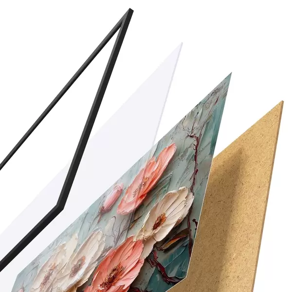 Plakatą sudaro rėmas, pleksiklas, atspausdintas vaizdas ir medžio drožlių plokštės pagrindas. Plakatą galima iš karto pakabinti ant sienos dėl kitoje pusėje esančių laikiklių.