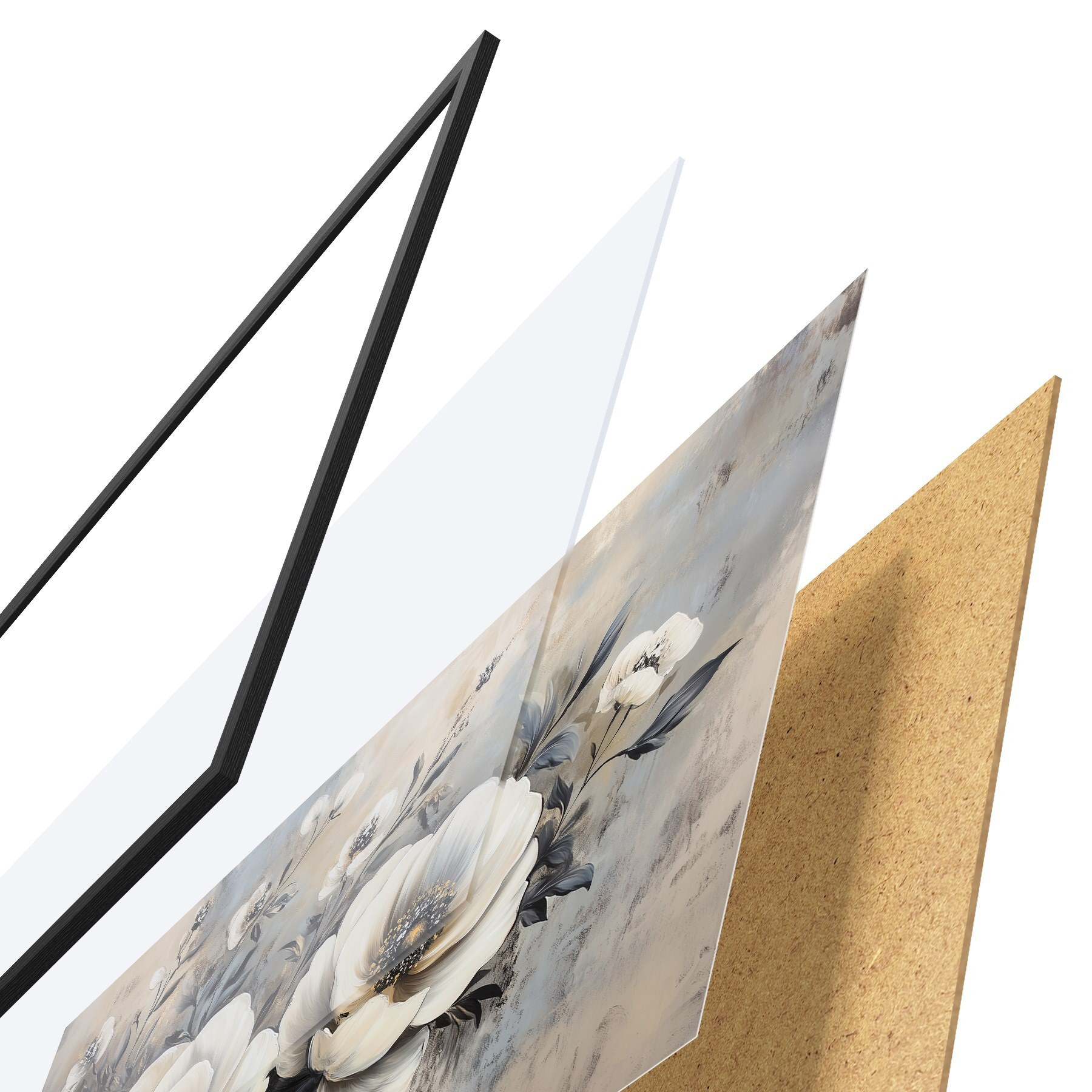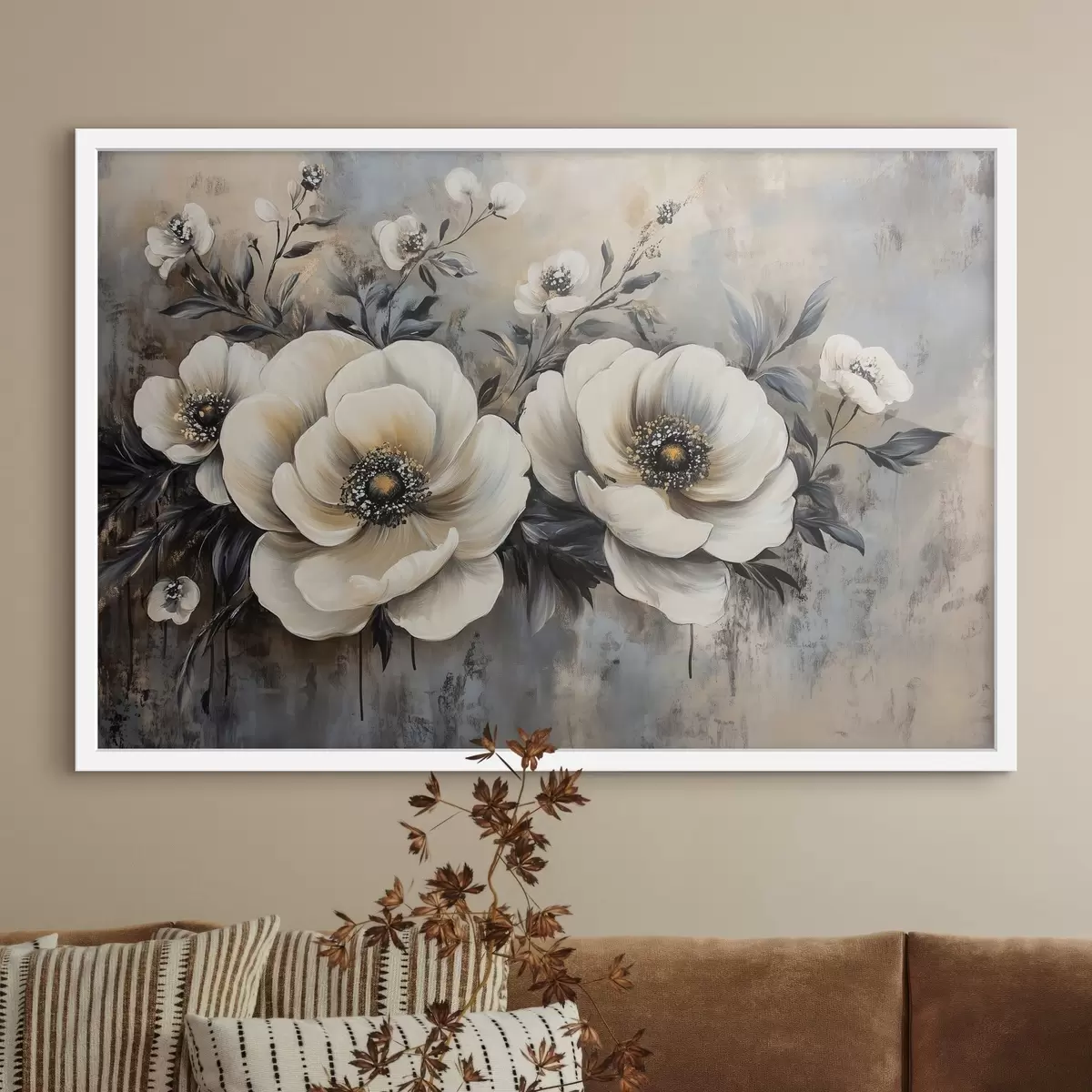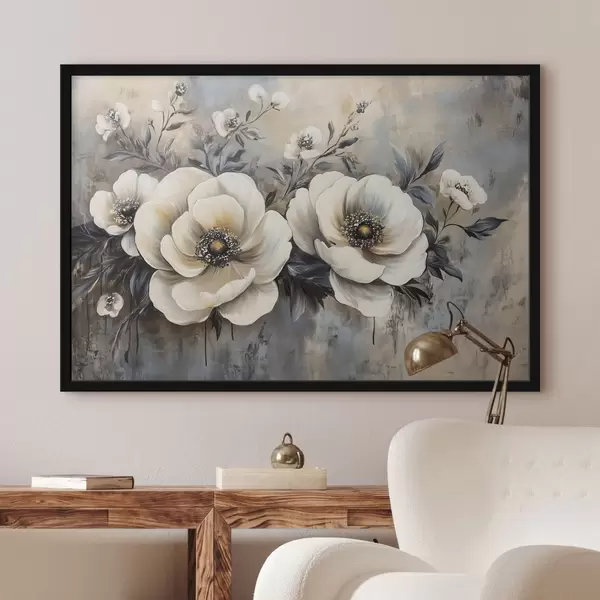 Plakatas Vintažinio stiliaus baltų gėlių šakelė f41828