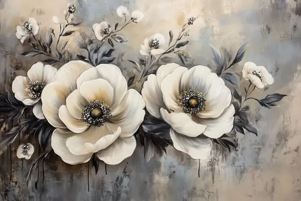 Plakatas Vintažinio stiliaus baltų gėlių šakelė f41828