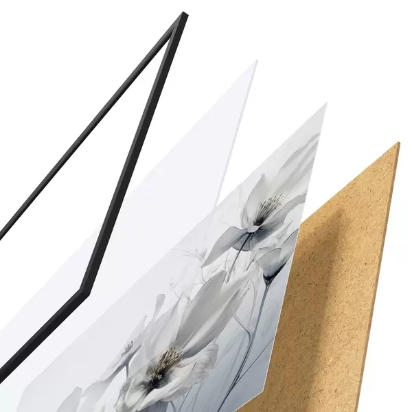 Plakatą sudaro rėmas, pleksiklas, atspausdintas vaizdas ir medžio drožlių plokštės pagrindas. Plakatą galima iš karto pakabinti ant sienos dėl kitoje pusėje esančių laikiklių.