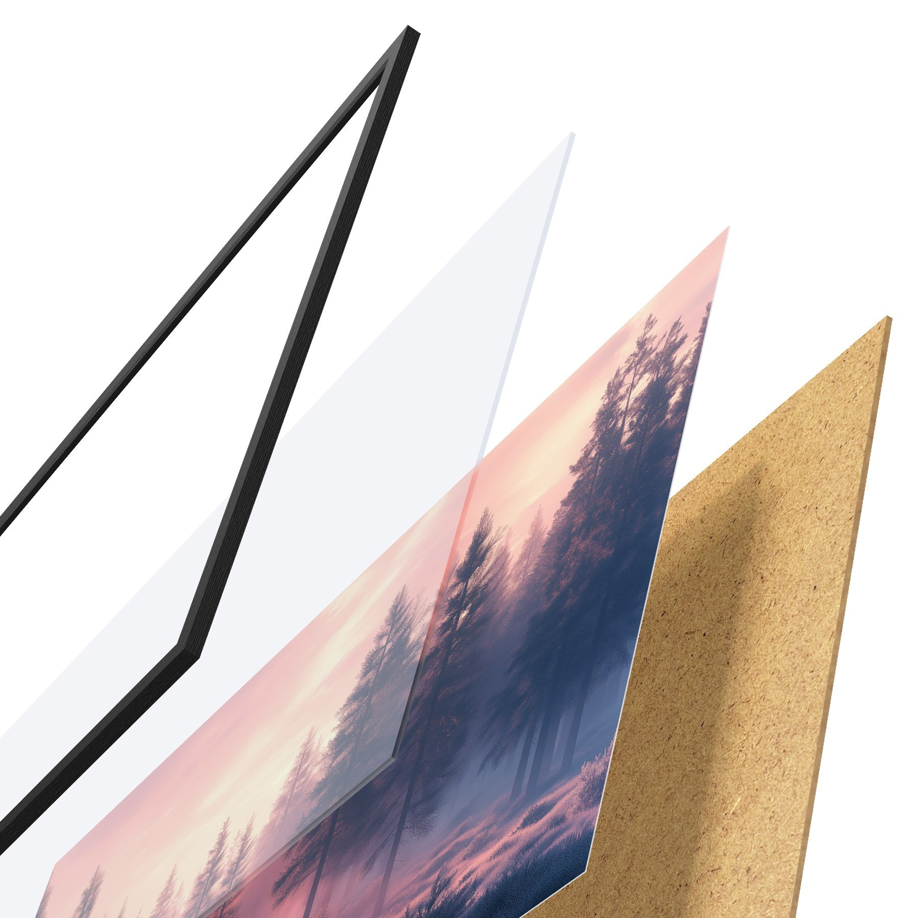 Plakatą sudaro rėmas, pleksiklas, atspausdintas vaizdas ir medžio drožlių plokštės pagrindas. Plakatą galima iš karto pakabinti ant sienos dėl kitoje pusėje esančių laikiklių.