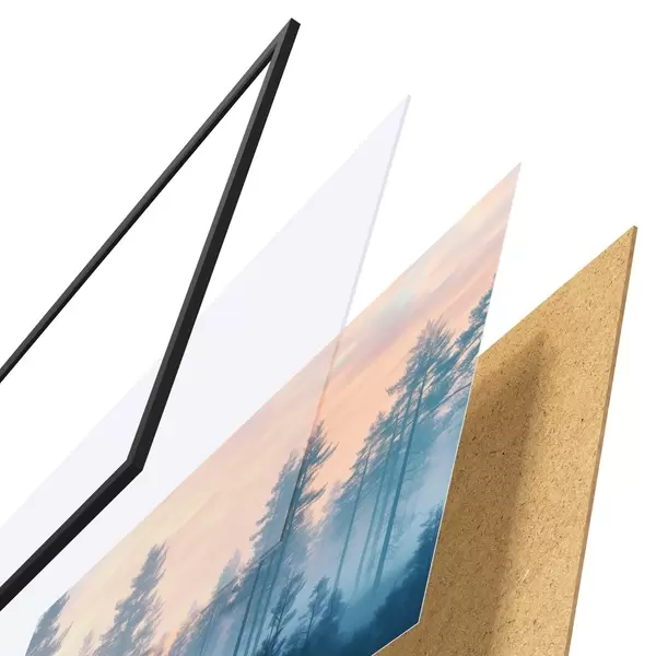 Plakatą sudaro rėmas, pleksiklas, atspausdintas vaizdas ir medžio drožlių plokštės pagrindas. Plakatą galima iš karto pakabinti ant sienos dėl kitoje pusėje esančių laikiklių.