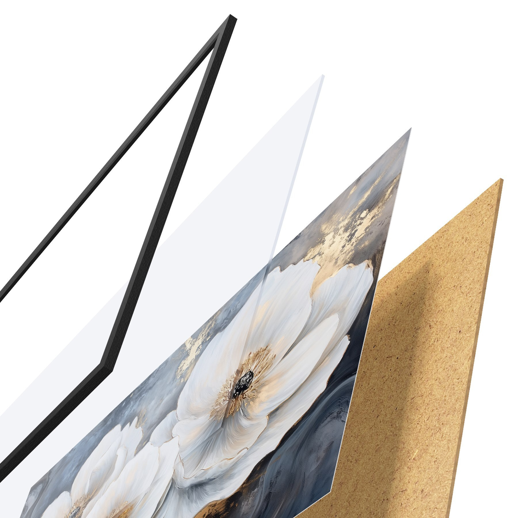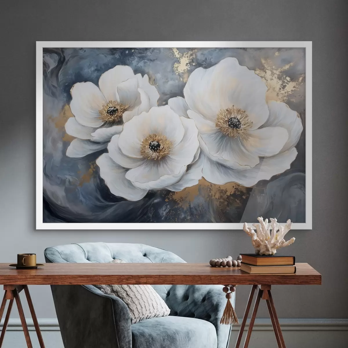 Plakatas Baltos švelnios gėlės aliejinės tapybos potėpių fone Ne f41833