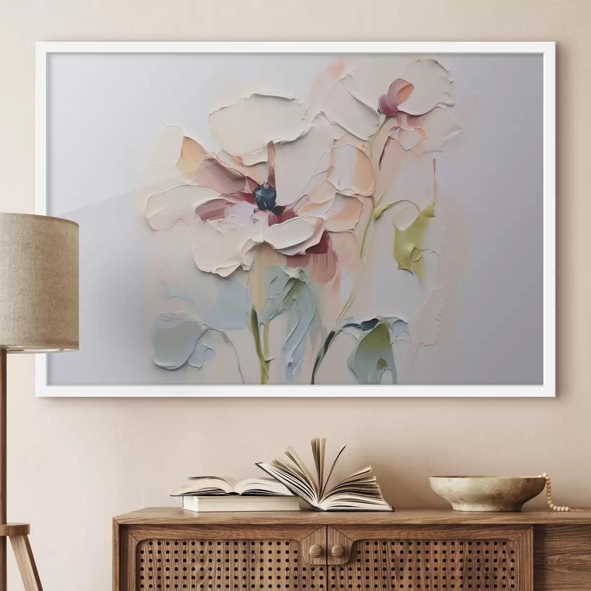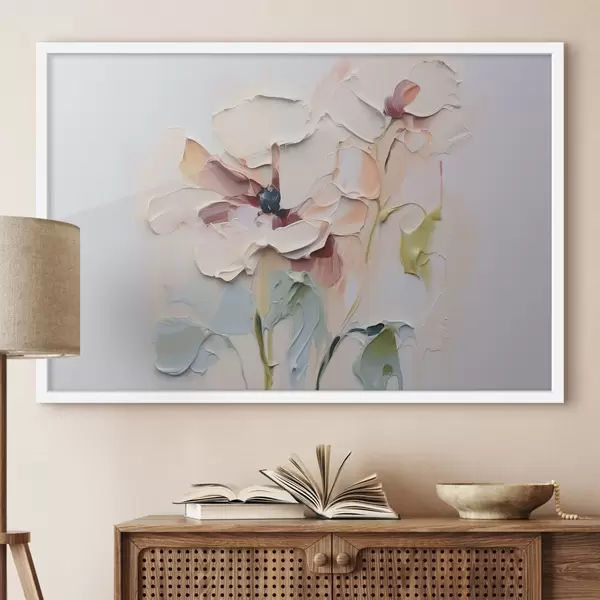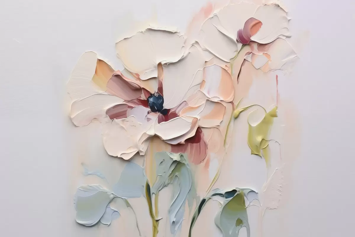 Plakatas Abstrakčios gėlės, imituojančios dažų potėpius su tekstūra fone f41850