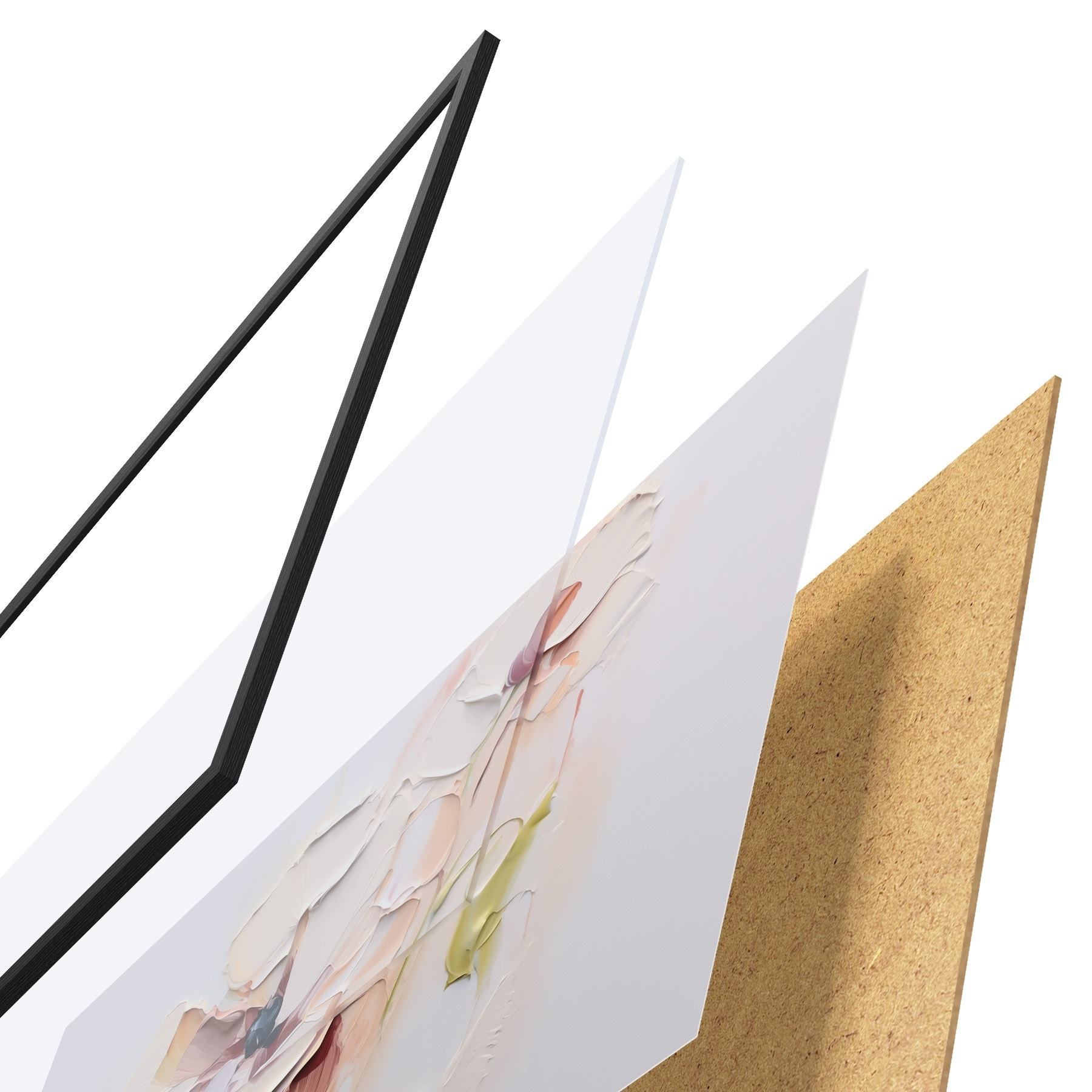 Plakatą sudaro rėmas, pleksiklas, atspausdintas vaizdas ir medžio drožlių plokštės pagrindas. Plakatą galima iš karto pakabinti ant sienos dėl kitoje pusėje esančių laikiklių.