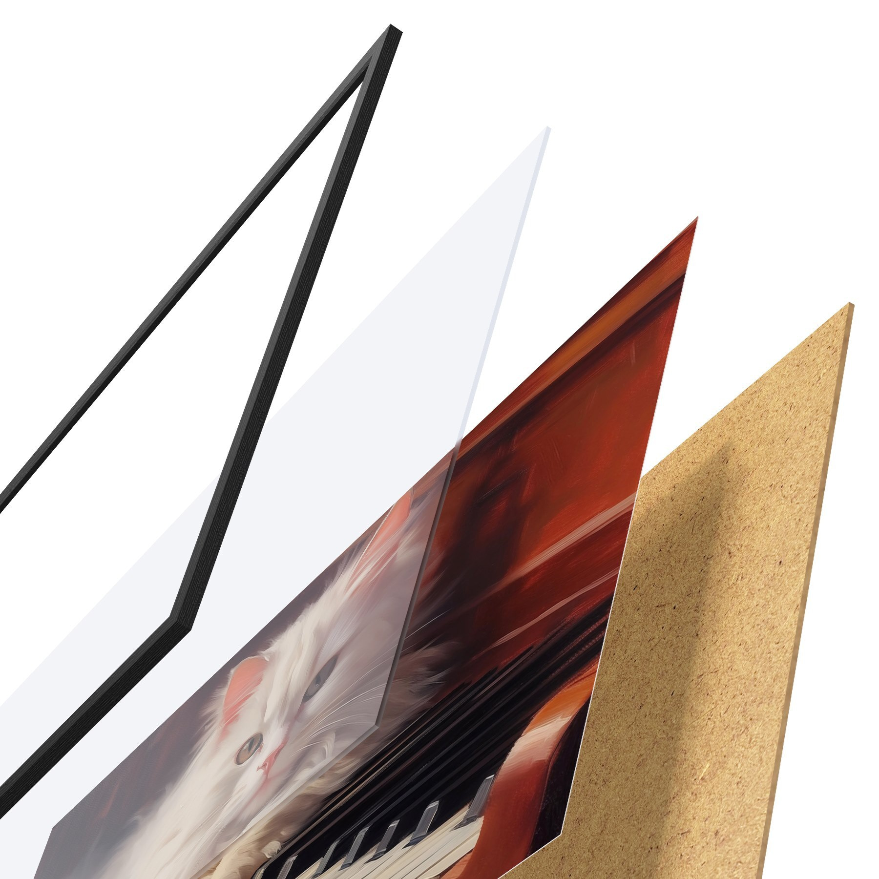 Plakatą sudaro rėmas, pleksiklas, atspausdintas vaizdas ir medžio drožlių plokštės pagrindas. Plakatą galima iš karto pakabinti ant sienos dėl kitoje pusėje esančių laikiklių.