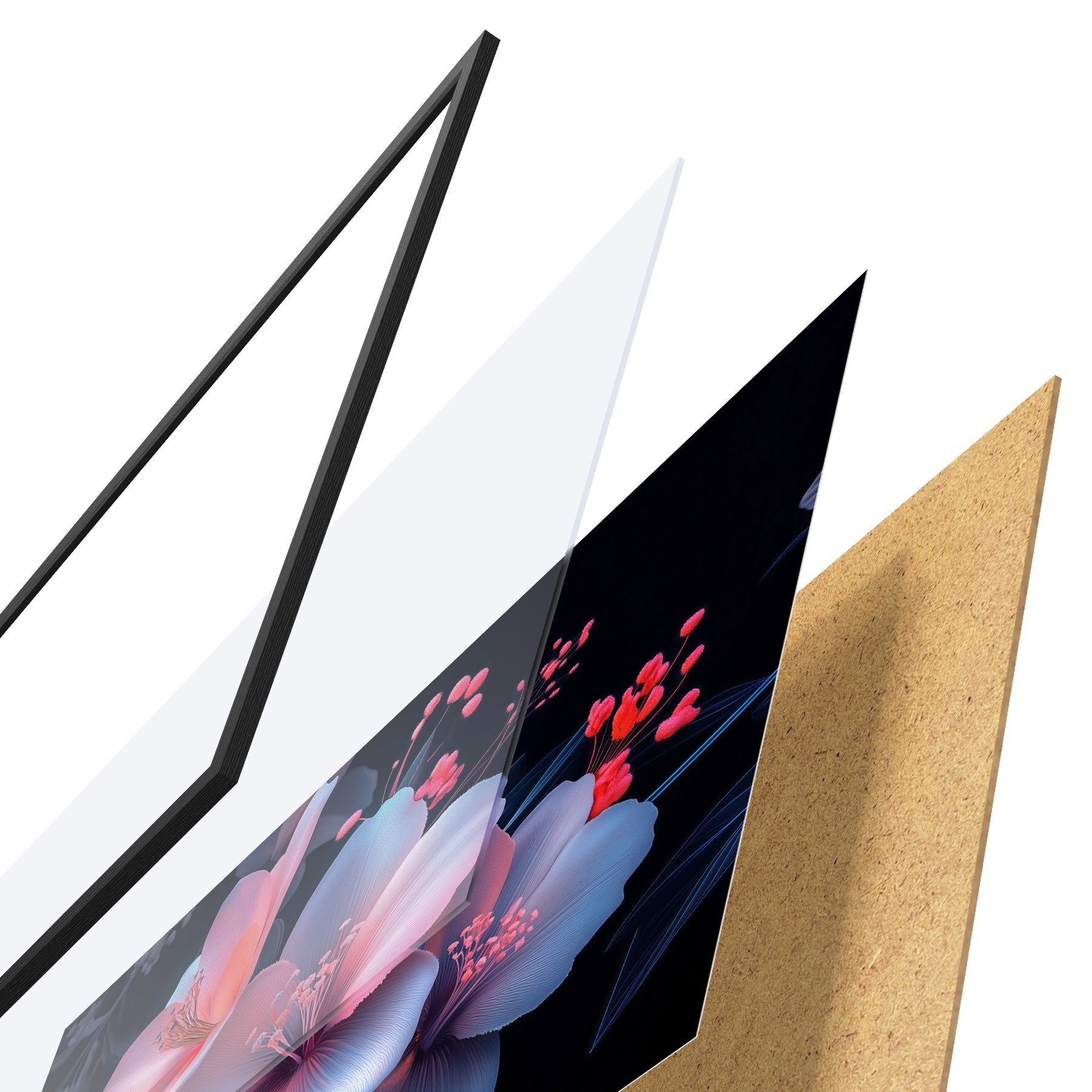 Plakatą sudaro rėmas, pleksiklas, atspausdintas vaizdas ir medžio drožlių plokštės pagrindas. Plakatą galima iš karto pakabinti ant sienos dėl kitoje pusėje esančių laikiklių.