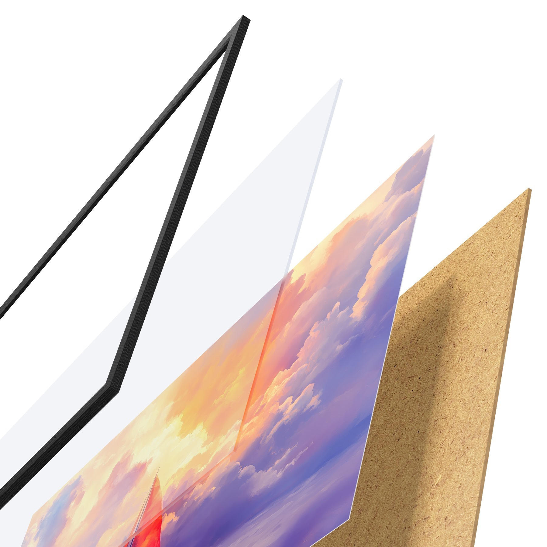 Plakatą sudaro rėmas, pleksiklas, atspausdintas vaizdas ir medžio drožlių plokštės pagrindas. Plakatą galima iš karto pakabinti ant sienos dėl kitoje pusėje esančių laikiklių.