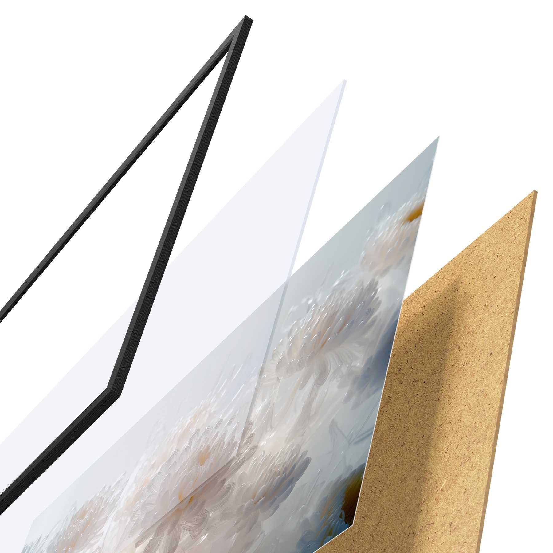 Plakatą sudaro rėmas, pleksiklas, atspausdintas vaizdas ir medžio drožlių plokštės pagrindas. Plakatą galima iš karto pakabinti ant sienos dėl kitoje pusėje esančių laikiklių.