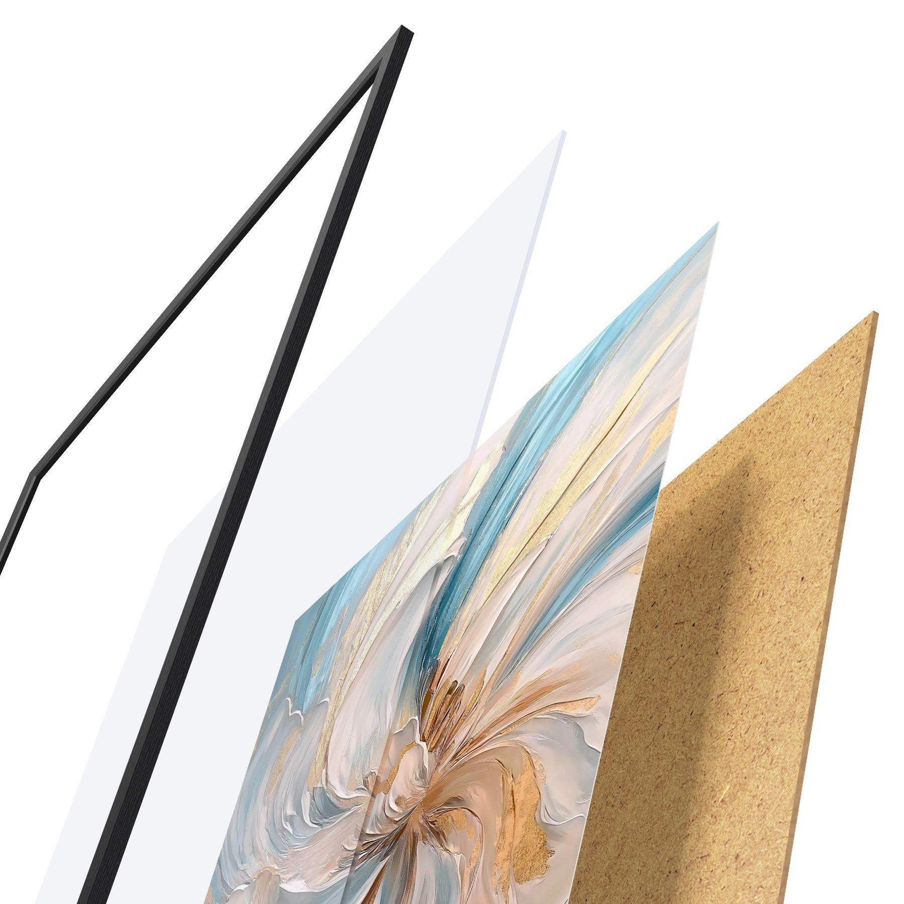 Plakatą sudaro rėmas, pleksiklas, atspausdintas vaizdas ir medžio drožlių plokštės pagrindas. Plakatą galima iš karto pakabinti ant sienos dėl kitoje pusėje esančių laikiklių.