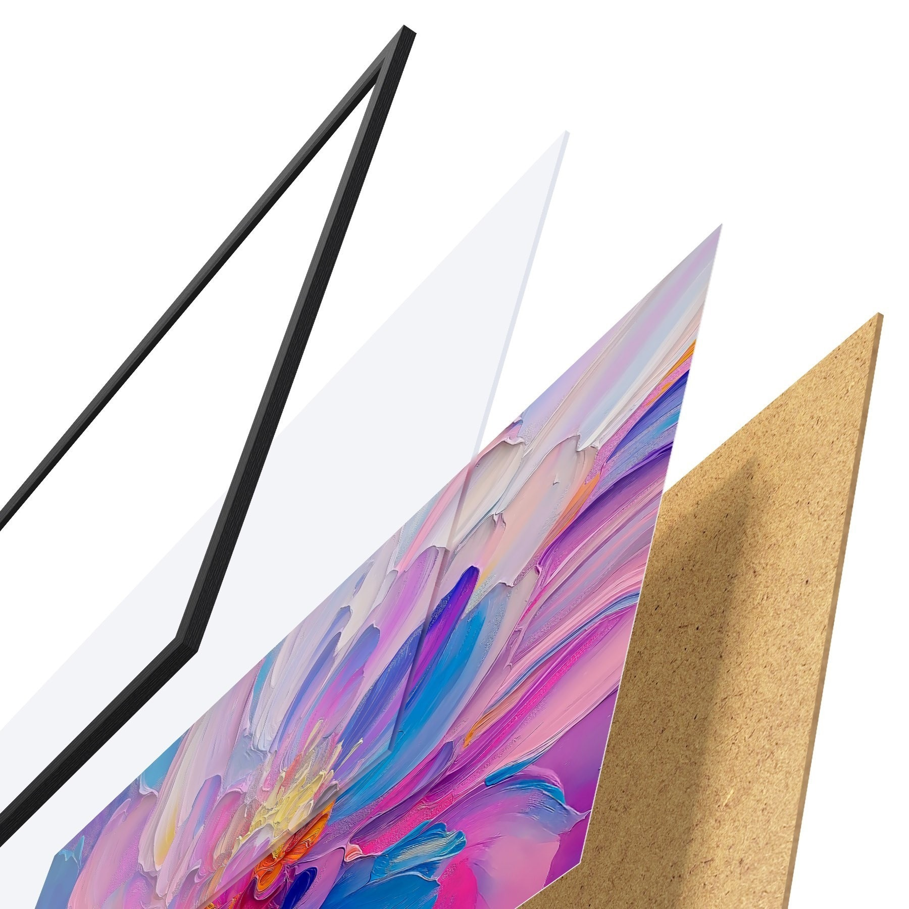 Plakatą sudaro rėmas, pleksiklas, atspausdintas vaizdas ir medžio drožlių plokštės pagrindas. Plakatą galima iš karto pakabinti ant sienos dėl kitoje pusėje esančių laikiklių.
