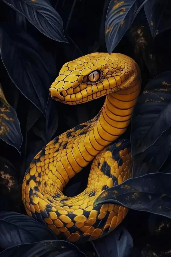 Plakatas Geltona gyvatė lapuose Ne f41927